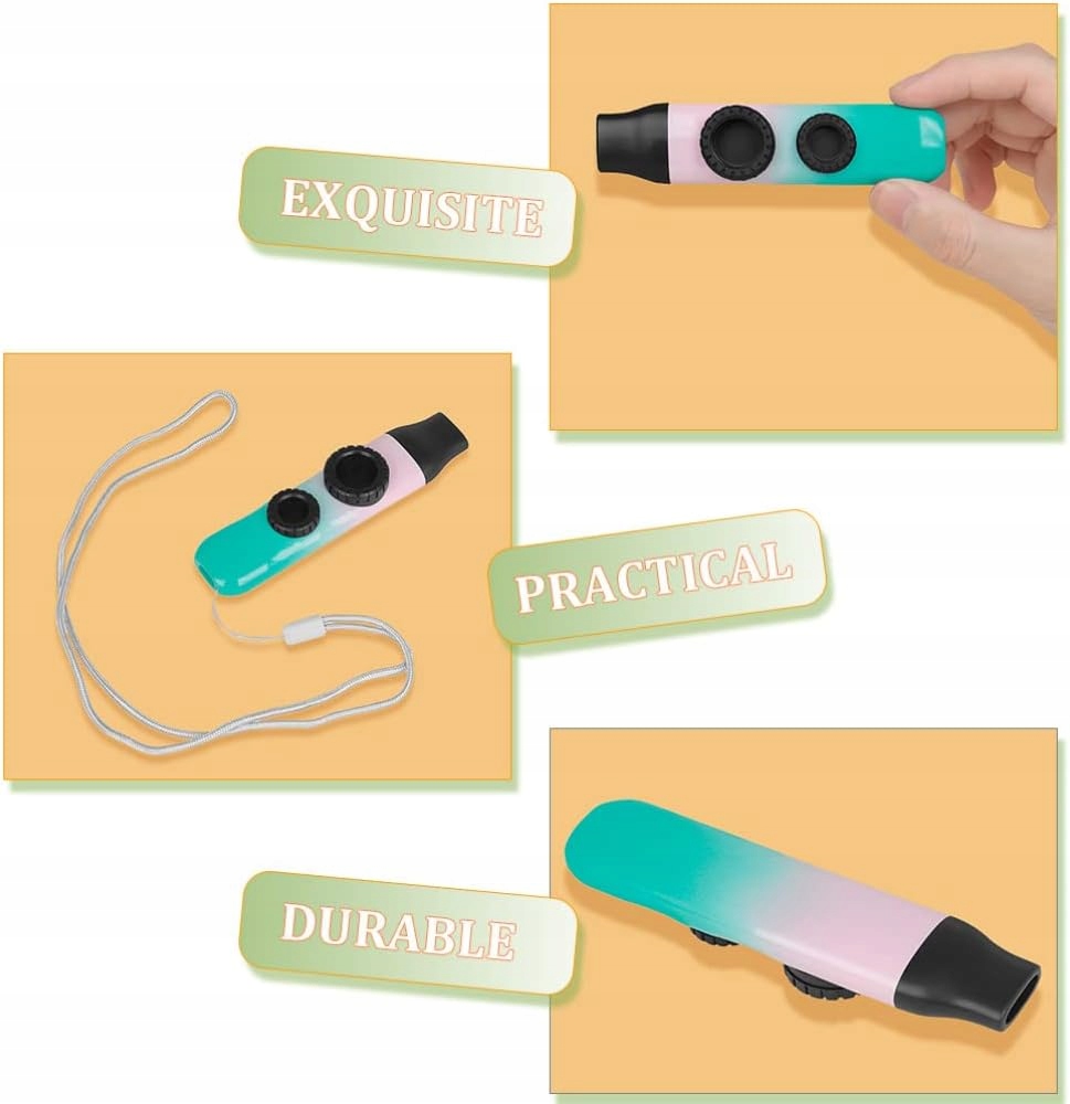 Інструменти Kazoo Структура флейти Kazoo проста, мембрани можна легко замінити. Це казу підходить для людей будь-якого віку, старі та діти можуть грати. Музичний інструмент kazoos, виготовлений з найякісніших абс матеріалів з сильним резонансом, адаптується до форми рота. портативний kazoo Kazoo легкий і його легко носити, оскільки він оснащений шнурком, який можна прикріпити до kazoo і його легко носити. професійний kazoo ідеальний компаньйон на свіжому повітрі для будь-якого віку та таких інструментів, як гітара, укулеле, клавішні тощо. гітарні партнери kazoos — інструмент, на якому легко грати, і на якому можна грати без навчання. може супроводжуватися різними інструментами, наприклад гітарою.