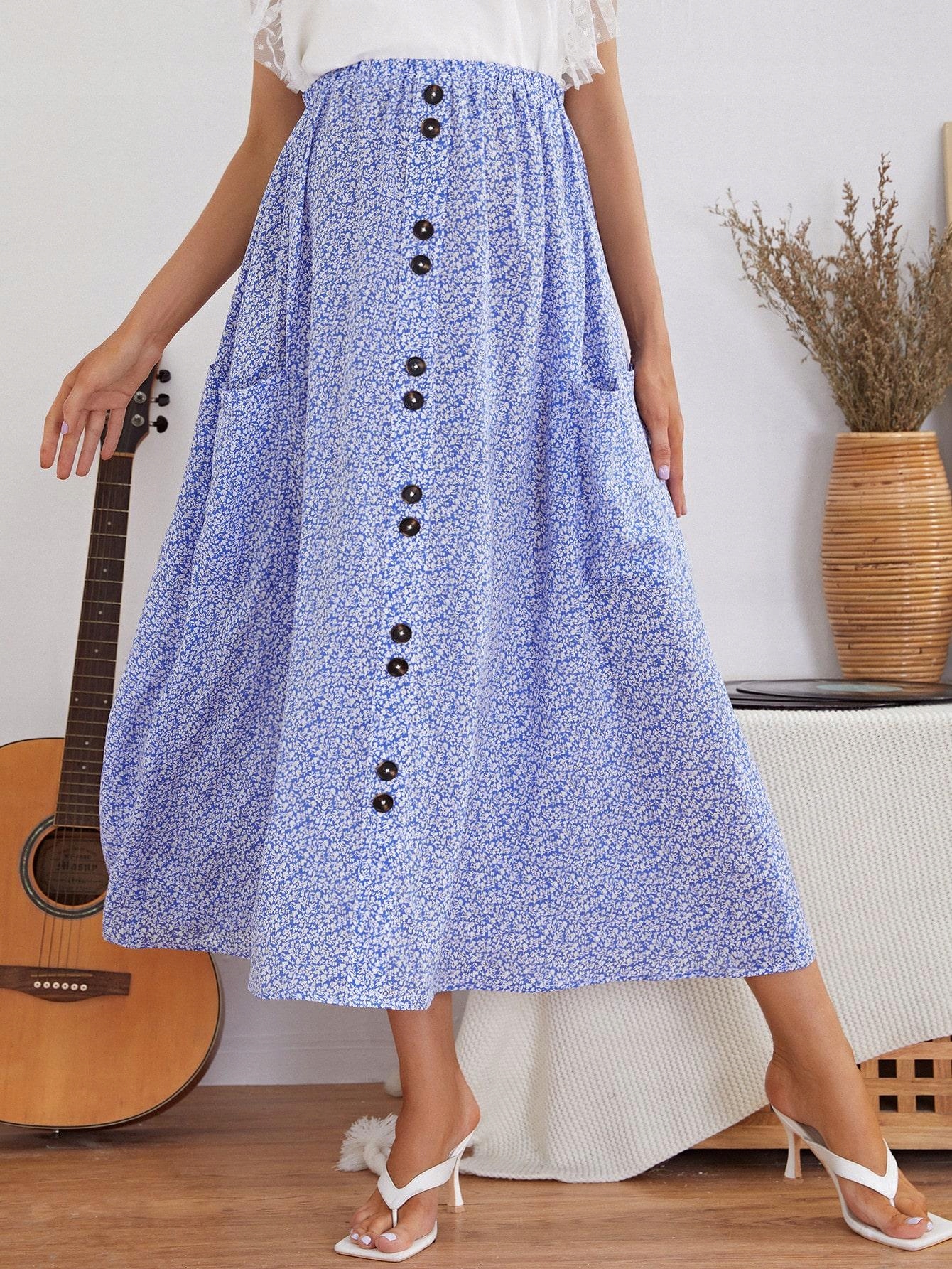KIESZENIE WZÓR ROŚLINNY SHEIN S SPÓDNICA CIĄŻOWA PROSTA MAXI KLASYCZNA
