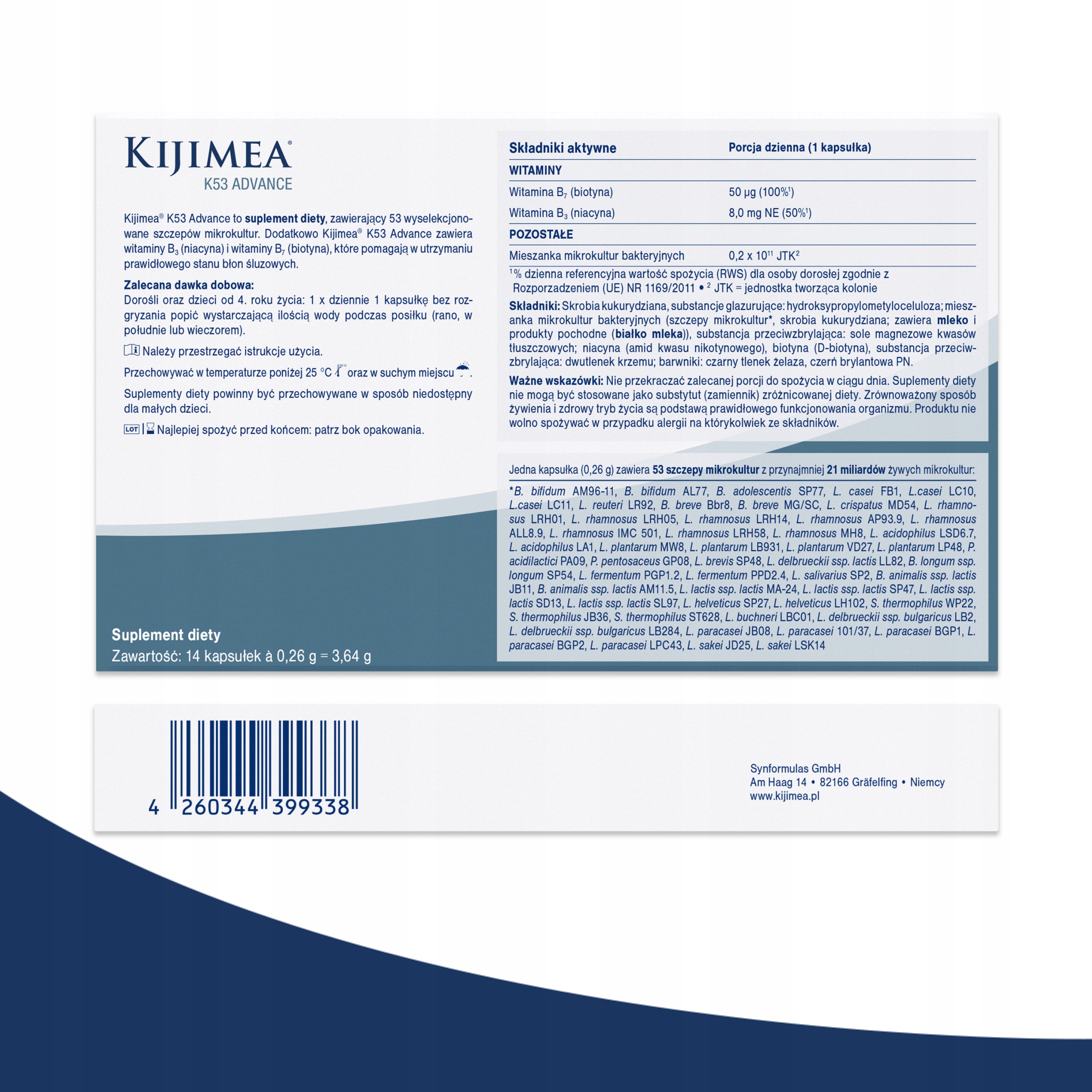 ✅ Ідеальна толерантність: Kijimea K53 Advance не містить глютену, фруктози та лактози, а також консервантів, ароматизаторів і підсолоджувачів.