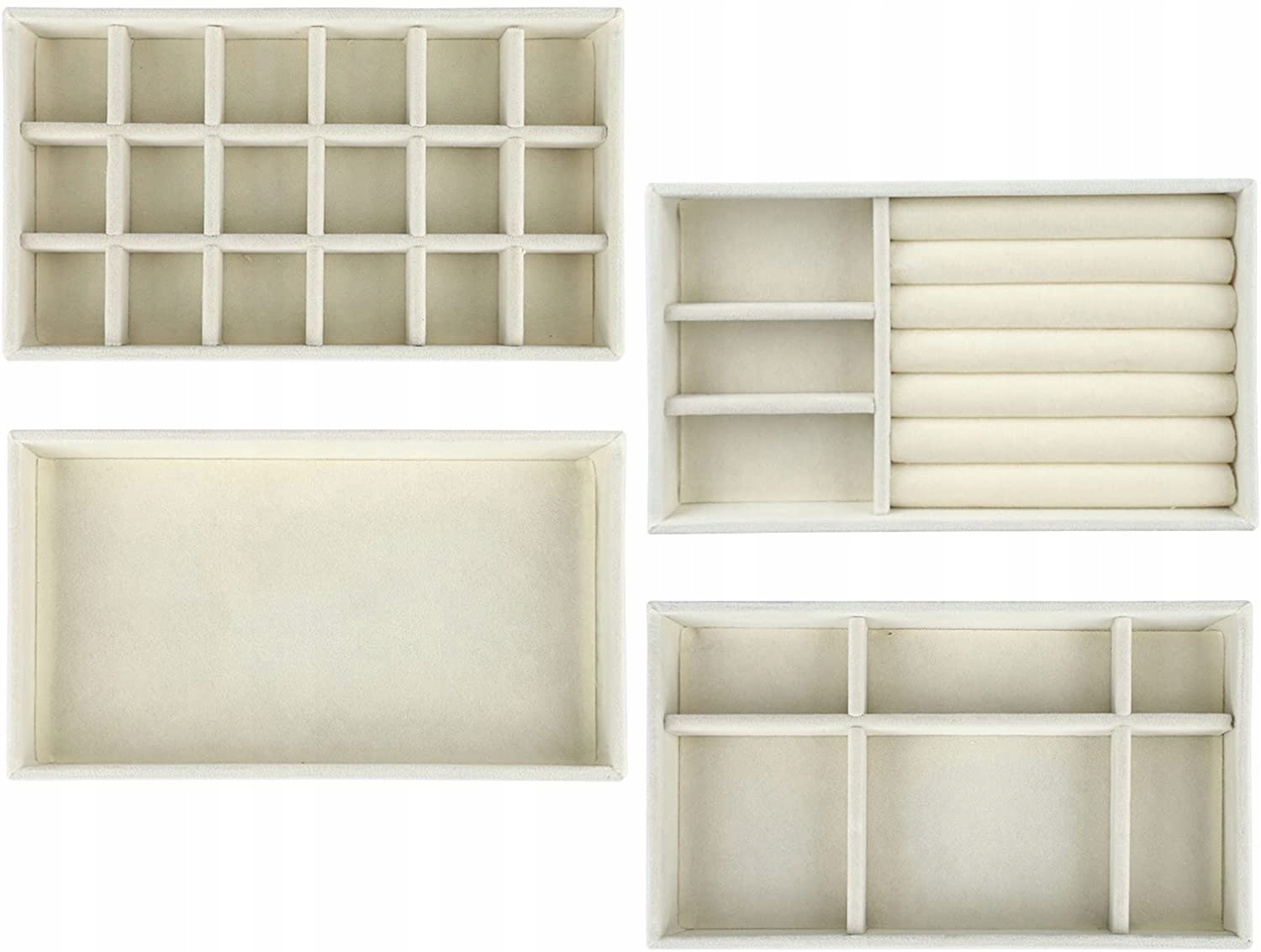 Набір лотків для ювелірних виробів із 4 оксамитових шухляд для ювелірних виробів, які можна штабелювати, лотка для ювелірних виробів. Сережки, каблучки, намиста, браслети, вітрини, лотки для зберігання ювелірних виробів, стиль 4 (бежевий)