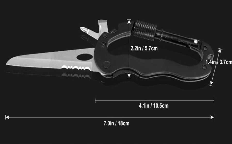 Карабін з алюмінієвого сплаву та леза з нержавіючої сталі.