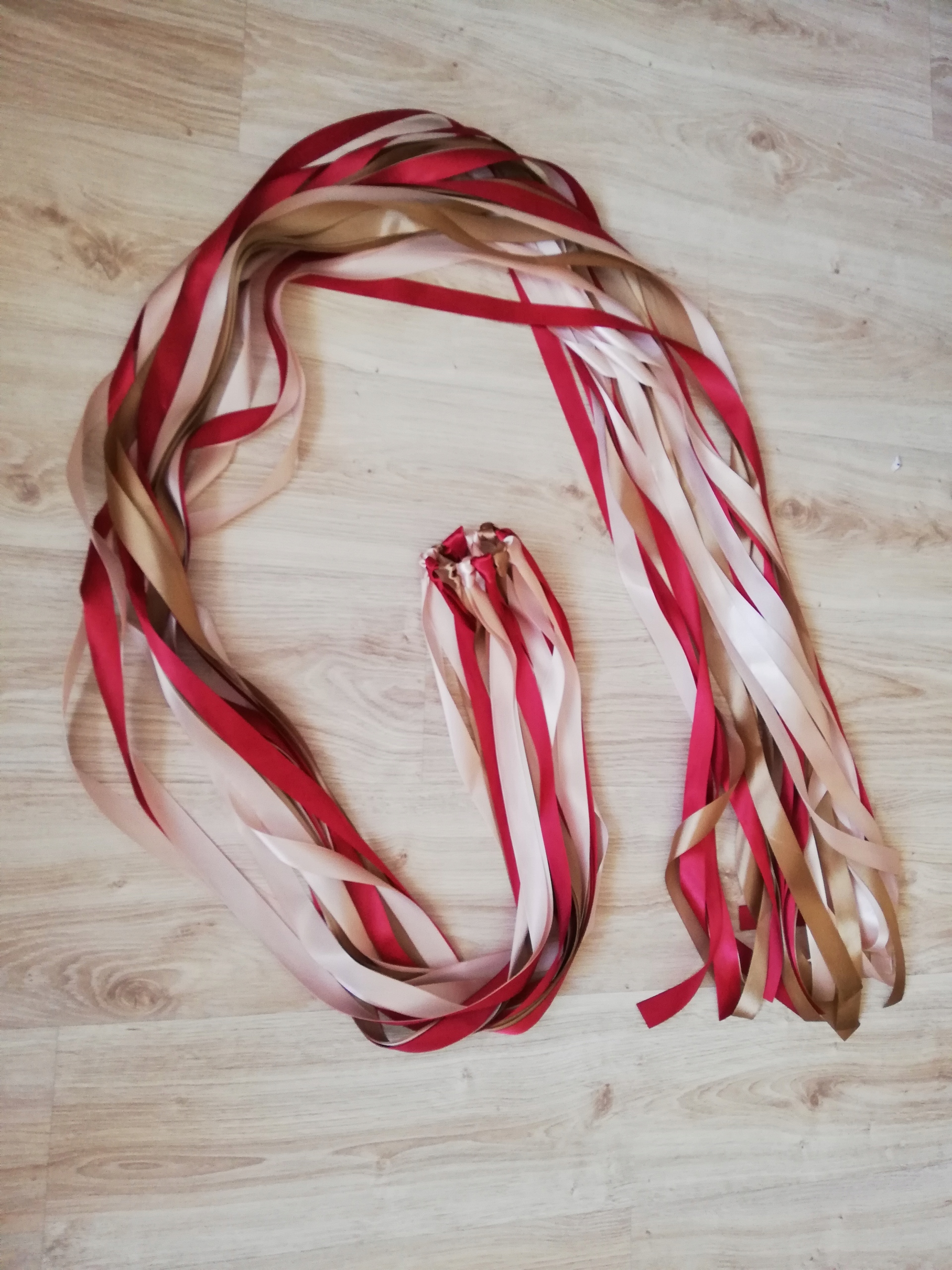 Кільце кладеться на нижню частину букета нареченої. Наречені, які беруть участь у грі, тримаються за кінці стрічок, ходять навколо Нареченої під ритм музики, Наречена навмання відрізає стрічки з закритими очима (очі можуть бути закриті Нареченим, Свідком або вони можна накрити тканиною). Наречену, у якої не відрізали стрічку, називають майбутньою нареченою.