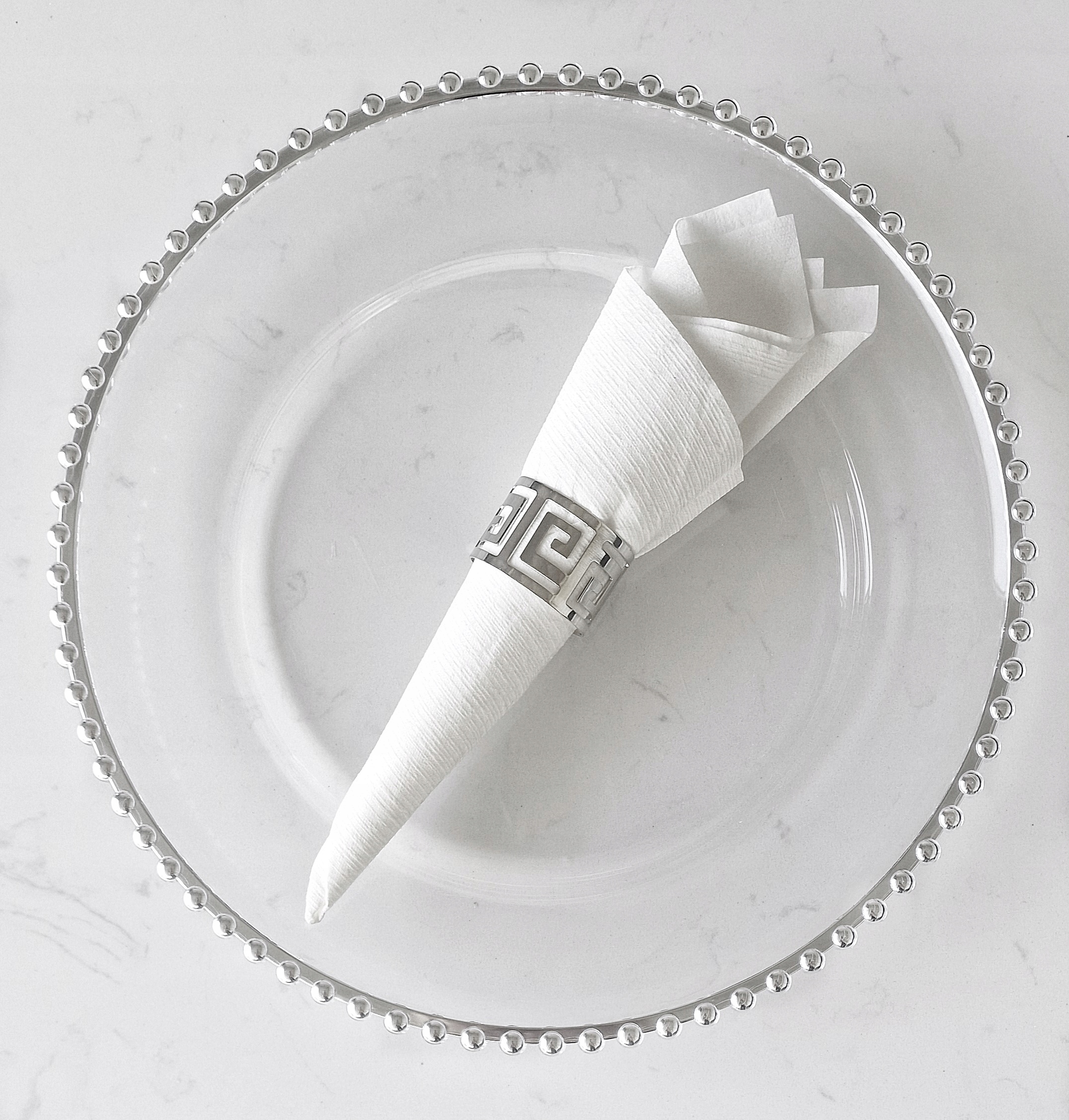 Набір містить 4 штуки серветів, що чудово підходить для оздоблення столу. Срібні кільця, розміщені з серветкою на тарілках або декоративних прокладках, утворюють ефективне ціле.