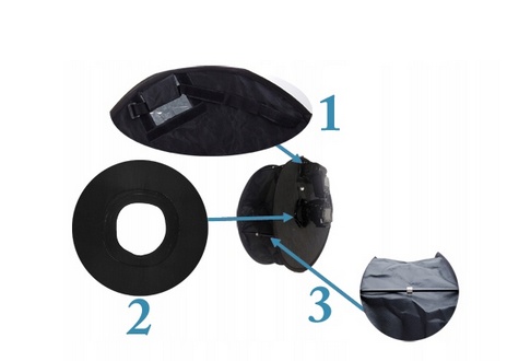 Розсіювач SOFTBOX кріпиться на спалах за допомогою спеціальних застібок-липучок, а лінза – закріплюється гумкою. Неймовірною перевагою є швидкість і простота розкладання і складання софтбоксу.