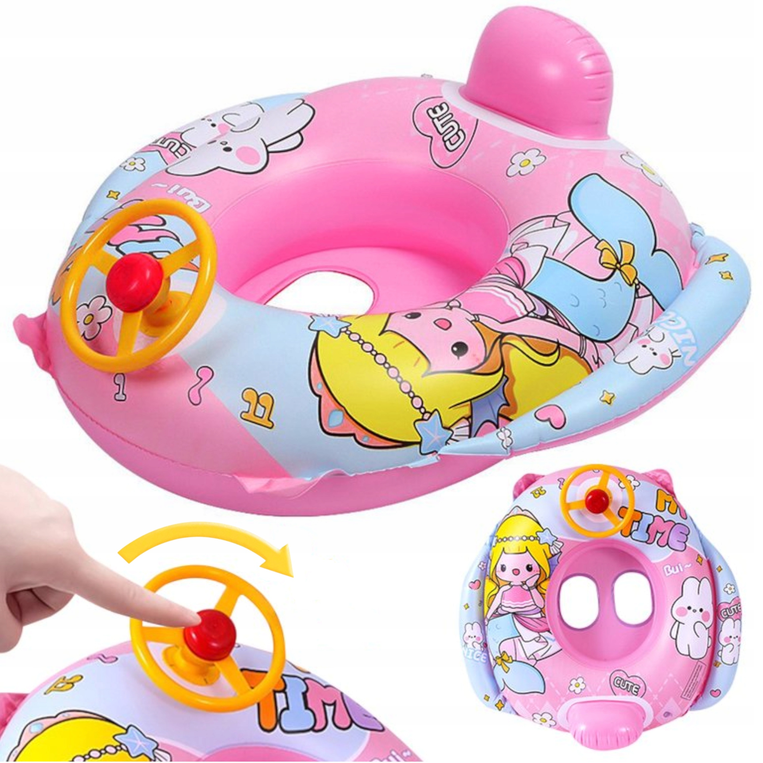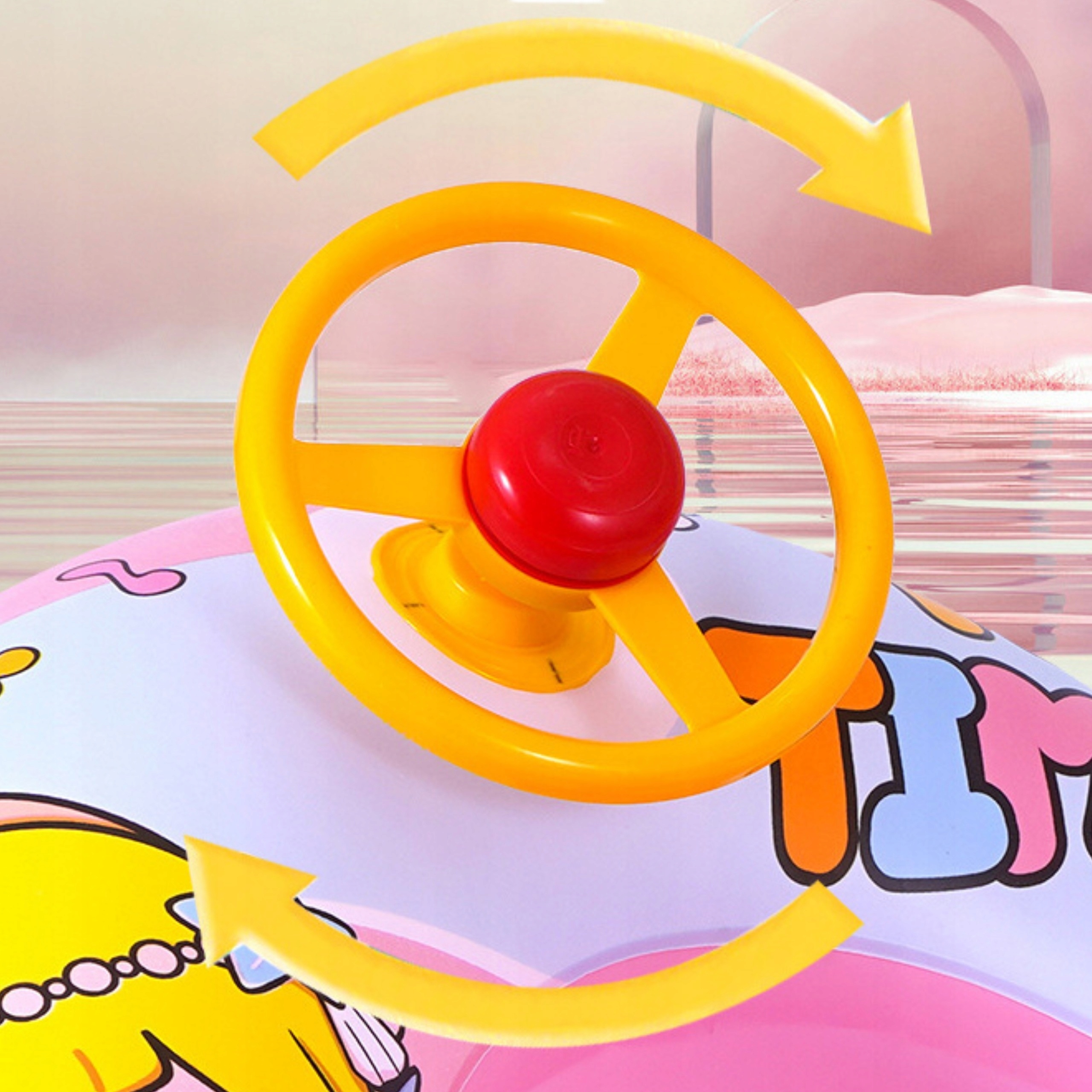 Колесо має поворотне кермо, яке дозволяє дитині грати роль капітана корабля, забезпечуючи масу задоволення та відчуття контролю над водною пригодою.