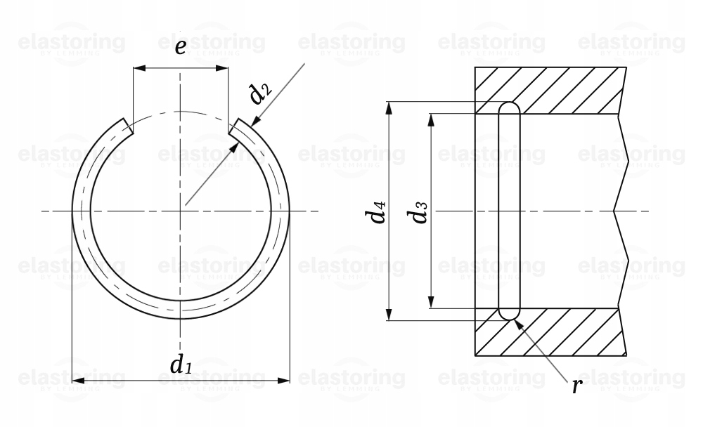 Стопорне кільце типу B використовується в механіці для захисту ущільнення або підшипника. Також можна використовувати як розпірку. Виготовлений з круглого дроту, високоміцної та гнучкої вуглецевої сталі. Розміщена в отворі, вона фіксує елементи та запобігає їх переміщенню під дією різних сил (вібрації, удари тощо).