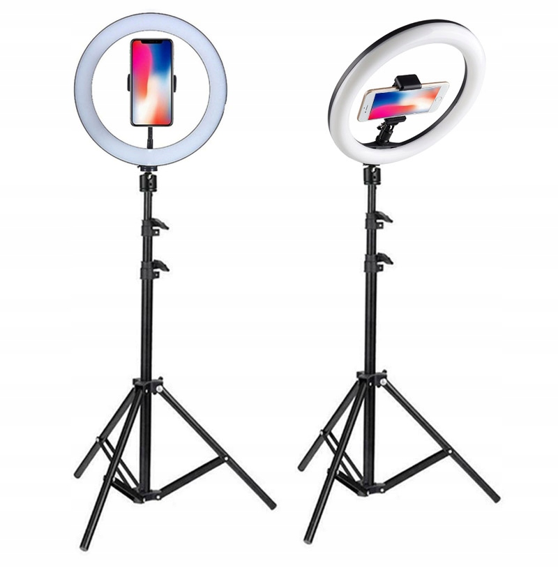 Кільцевий світильник потужністю 60 Вт і діаметром лампи 10,2 дюйма, з можливістю зміни кольору світла і зі штативом, який висувається на висоту 220 см.