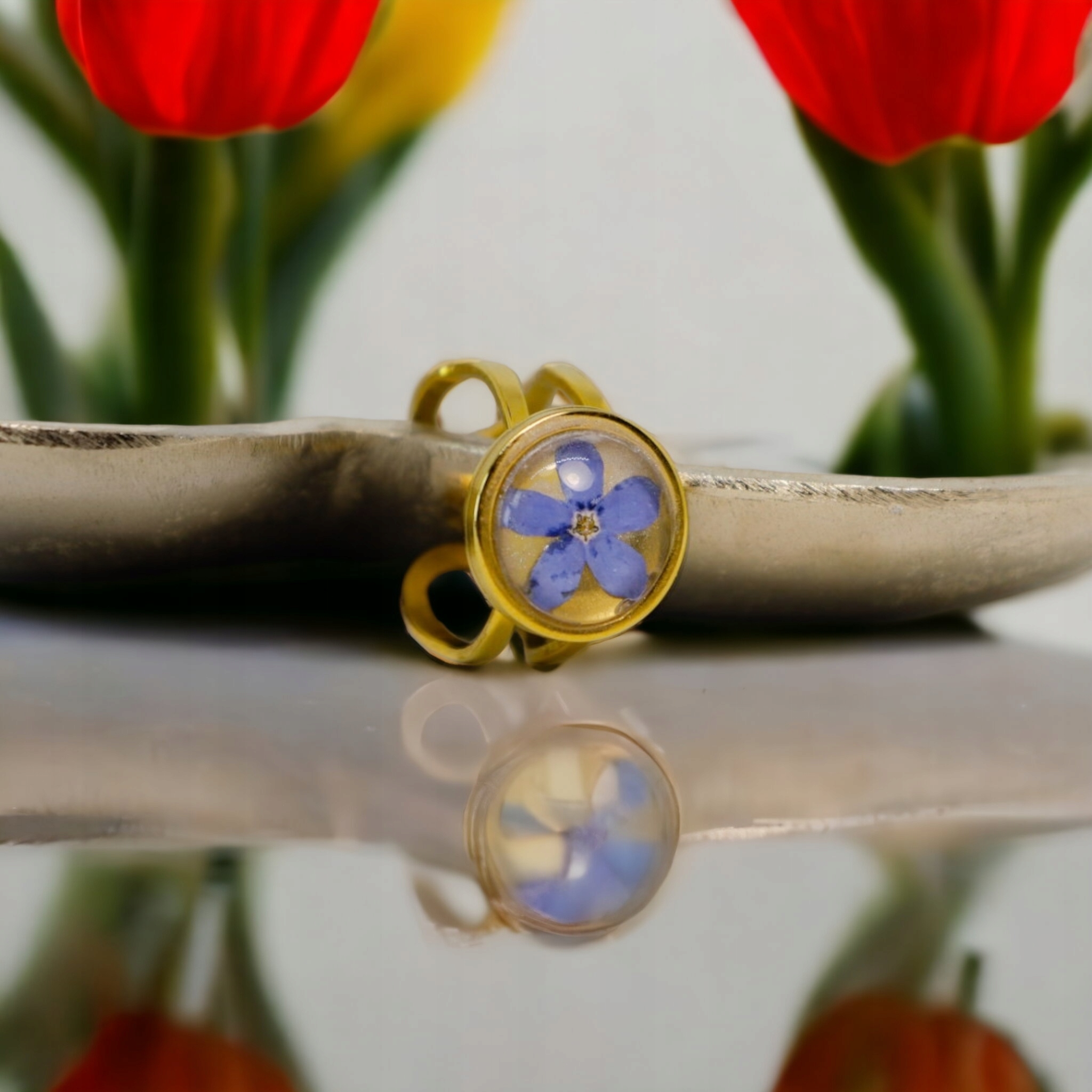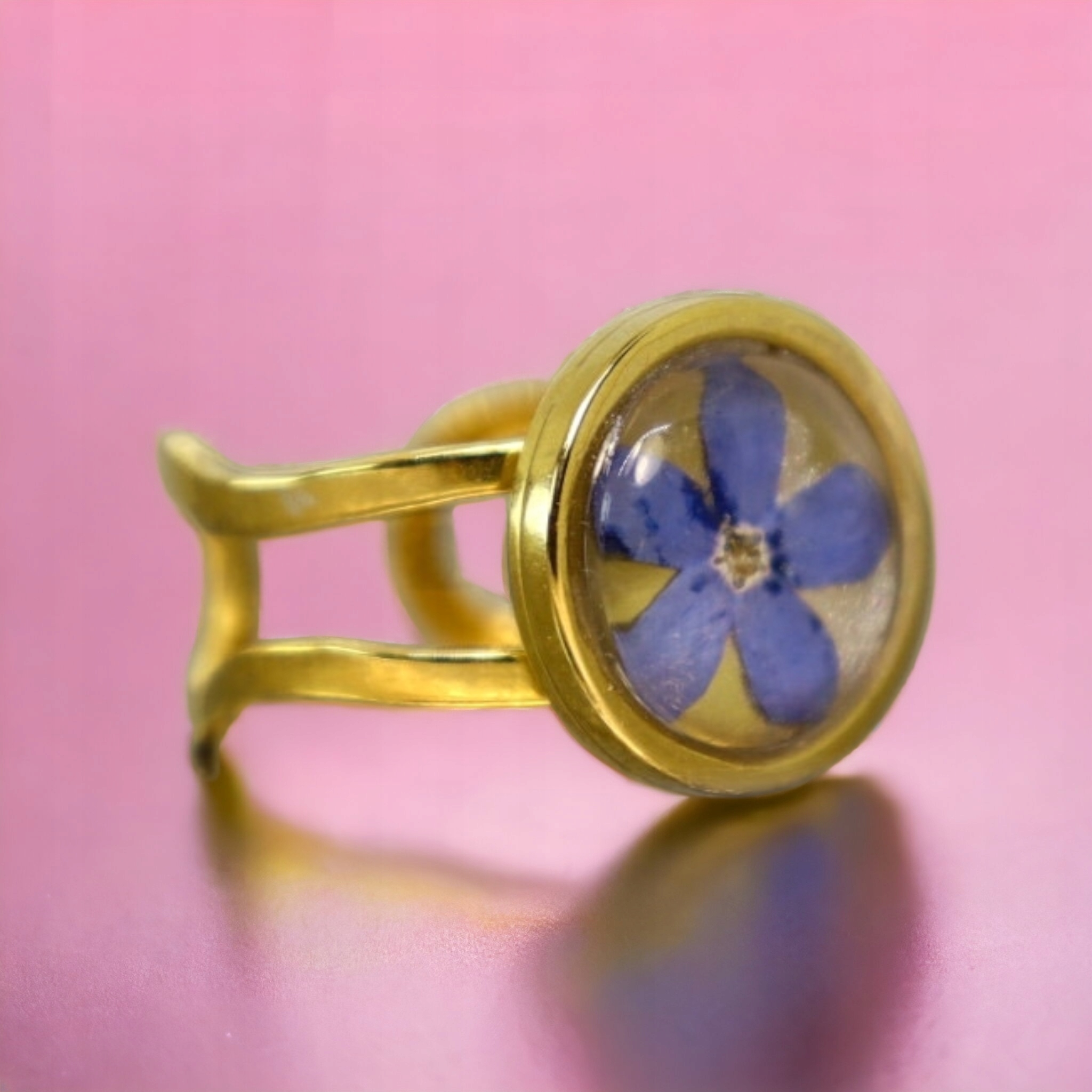 Представляю вам дивовижну каблучку на золотій нержавіючій сталі з чарівною справжньою квіткою Незабудки! 🌼🌸