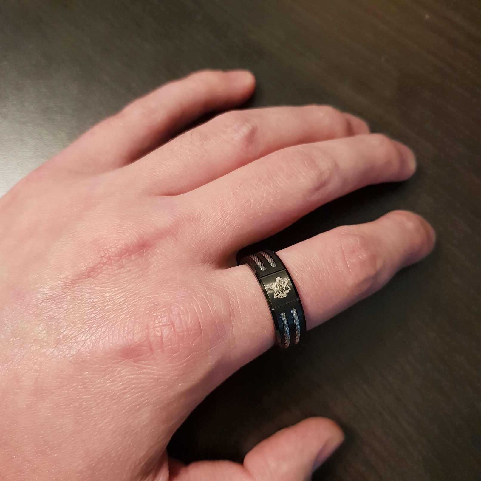 Красива обручка чорного вовка