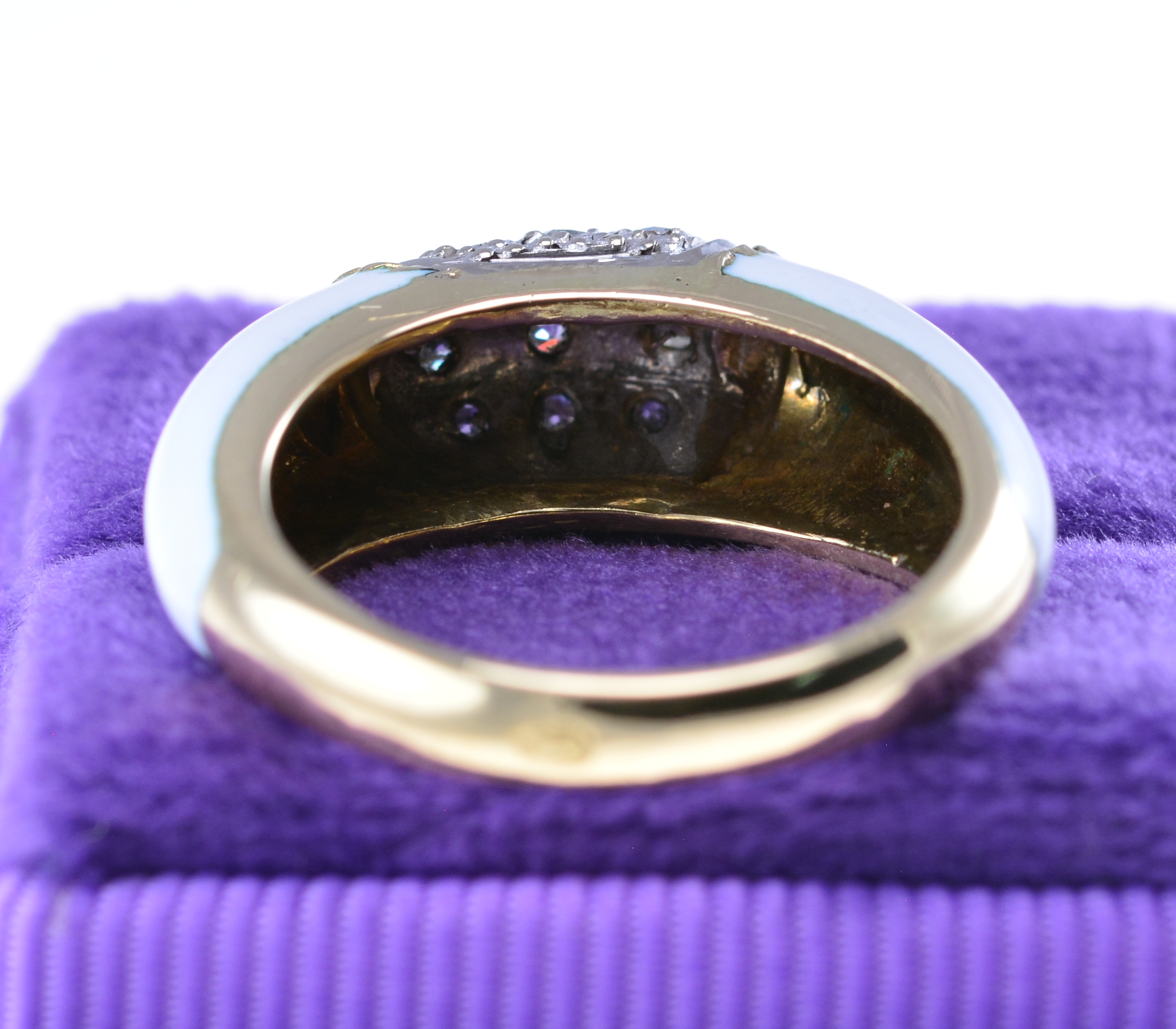 КІЛЬЦЕ З ЗОЛОТА 18К З БІЛОЮ ЕМАЛЮ ТА ДІАМАНТАМИ