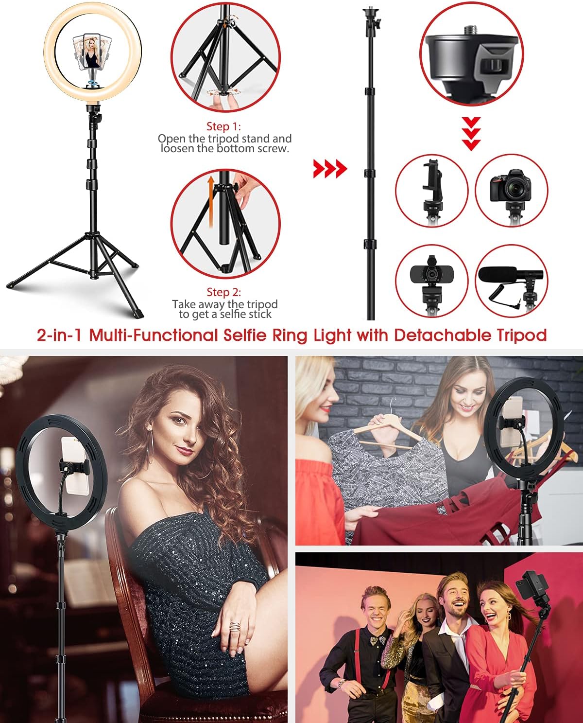 Кільцевий USB-лампа зі штативом.