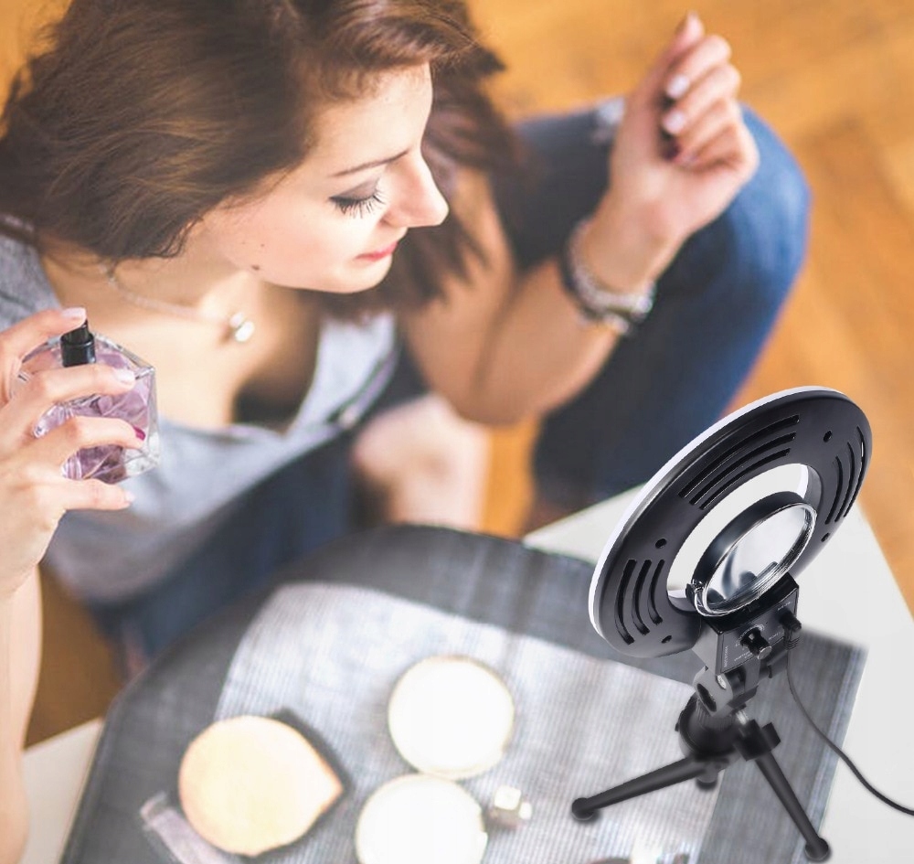 Кільцева світлова лампа ідеально підходить для фотографії дрібних предметів та макрофотографії. Як один з небагатьох, він повністю не мерехтував -він не вводить в оману лічильник балансу в апараті. RA> 90. Лампа ідеально працюватиме як макіяж та портретна лампа. Діммер Завдяки якому ми можемо плавно відрегулювати потужність світла.