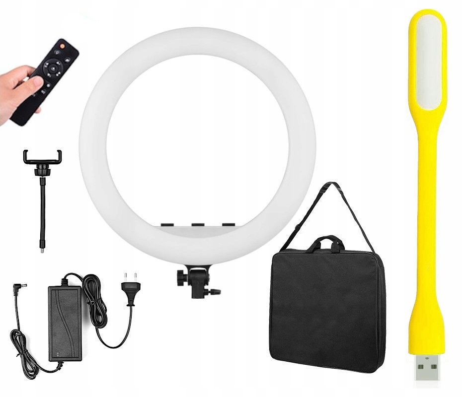 ✅ Велика та ефективна світлодіодна кільцева лампа з діаметром 45 см з плавною потужністю та контролем температури кольору в дуже широкому діапазоні - від теплого світла 2700 к до холодного 6500 К. Порт USB в корпусі дозволяє заряджати телефон під час тривалої роботи. Власник смартфонів на гнучкому плечі та дистанційному керуванні для дистанційного керування світлом.