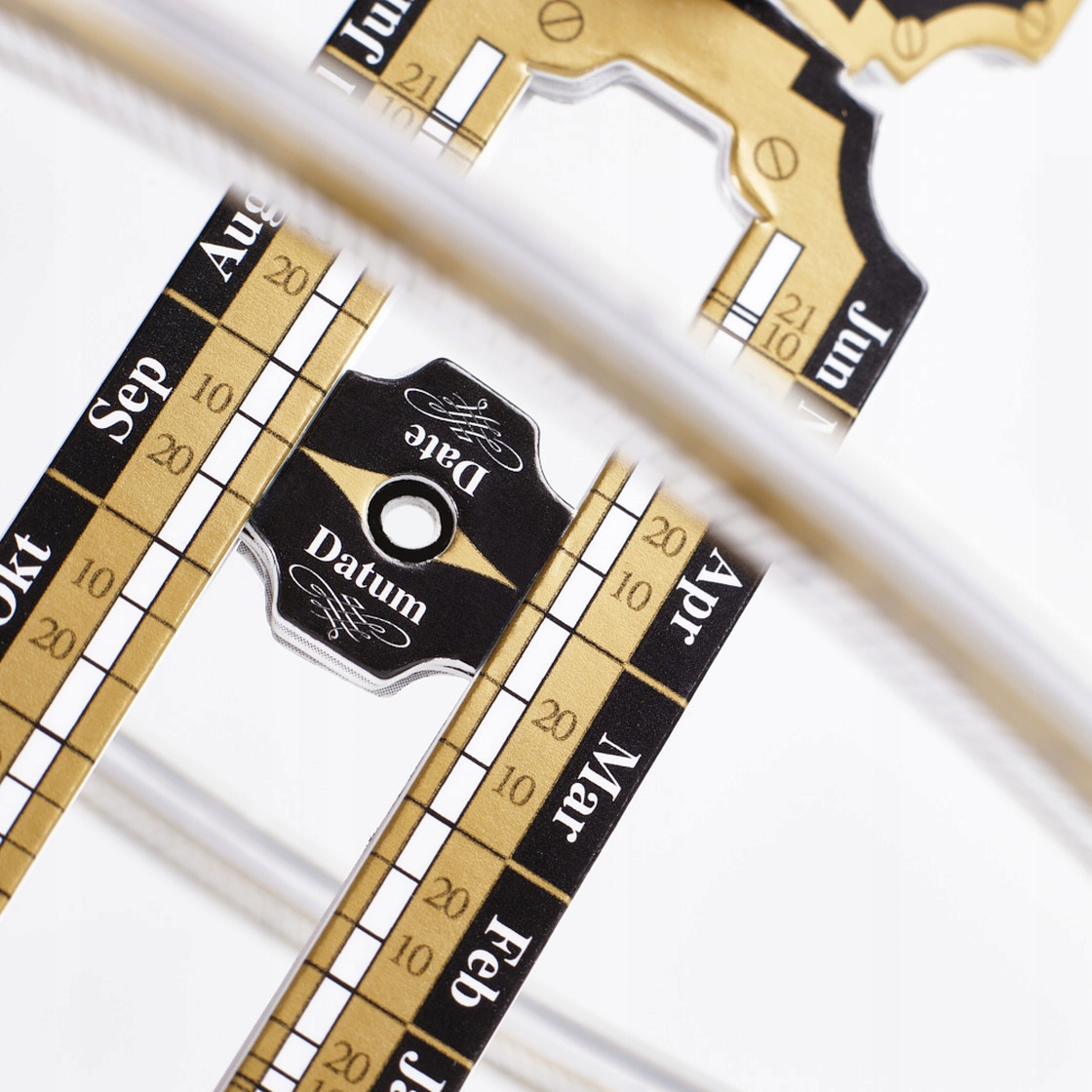 Надійна конструкція багатошарового красивого золотистого і чорного лакованого картону, з якого будуть виготовлені два концентричних кільця з ручкою і бігунком, складаючи годинник. Картонні елементи попередньо вирізані методом висікання, що дозволяє їх видаляти без розрізання.