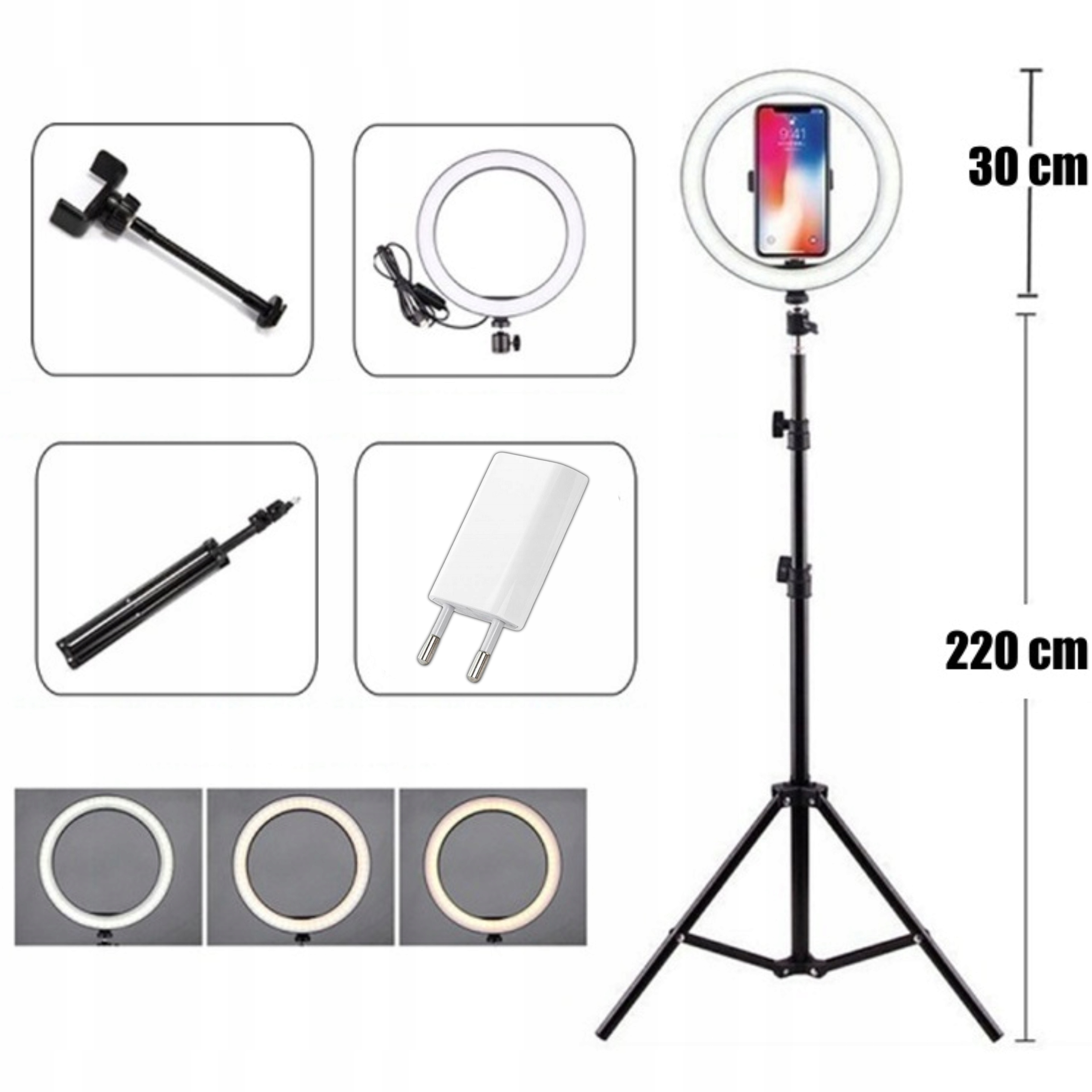 Кільцевий світлодіодний світильник Asato 80 Вт + ЗАРЯДНИЙ ПРИСТРІЙ USB 1A CUBE PLUG БЛОК ЖИВЛЕННЯ ДЛЯ КАМЕРИ РОЗУМНОГО ГОДИННИКА