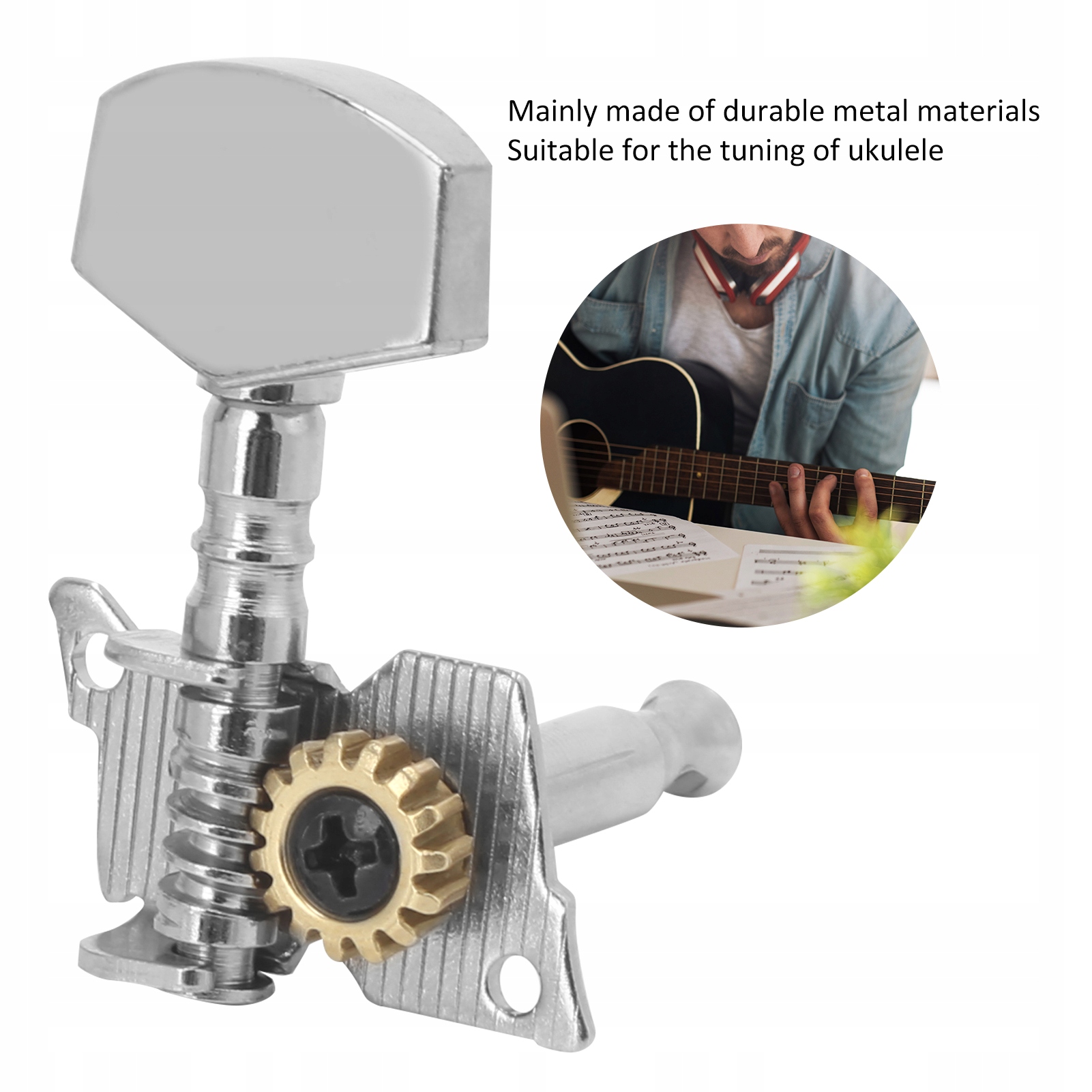 1. Настрій гітарних рядків не можна легко послабити, що забезпечує стабільну роботу нашої гітари. Металевий корпус і кругла голова з срібного пластику роблять ці замикаючі клавіші, стійкі до іржі, корозії, стабільної та міцної. В основному, виготовлені з міцних металевих матеріалів, ці тюнери ідеально підходять для настройки укулеле. Ці запчастини для гітари прості в встановленні, і ви можете замінити старі або брудні гітарні дюбелі. Існує 5 різних моделей, включаючи 3 лівих та 3 правих, 2 лівих та 4 правих, 4 лівих та 2 правих, 6 лівих та 6 правих. Ви можете вибрати відповідно до своїх потреб.