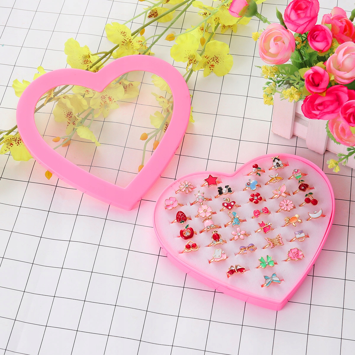 36 кілець у вітрині у формі серця. Ідеальний набір прикрас своїми руками для дітей.