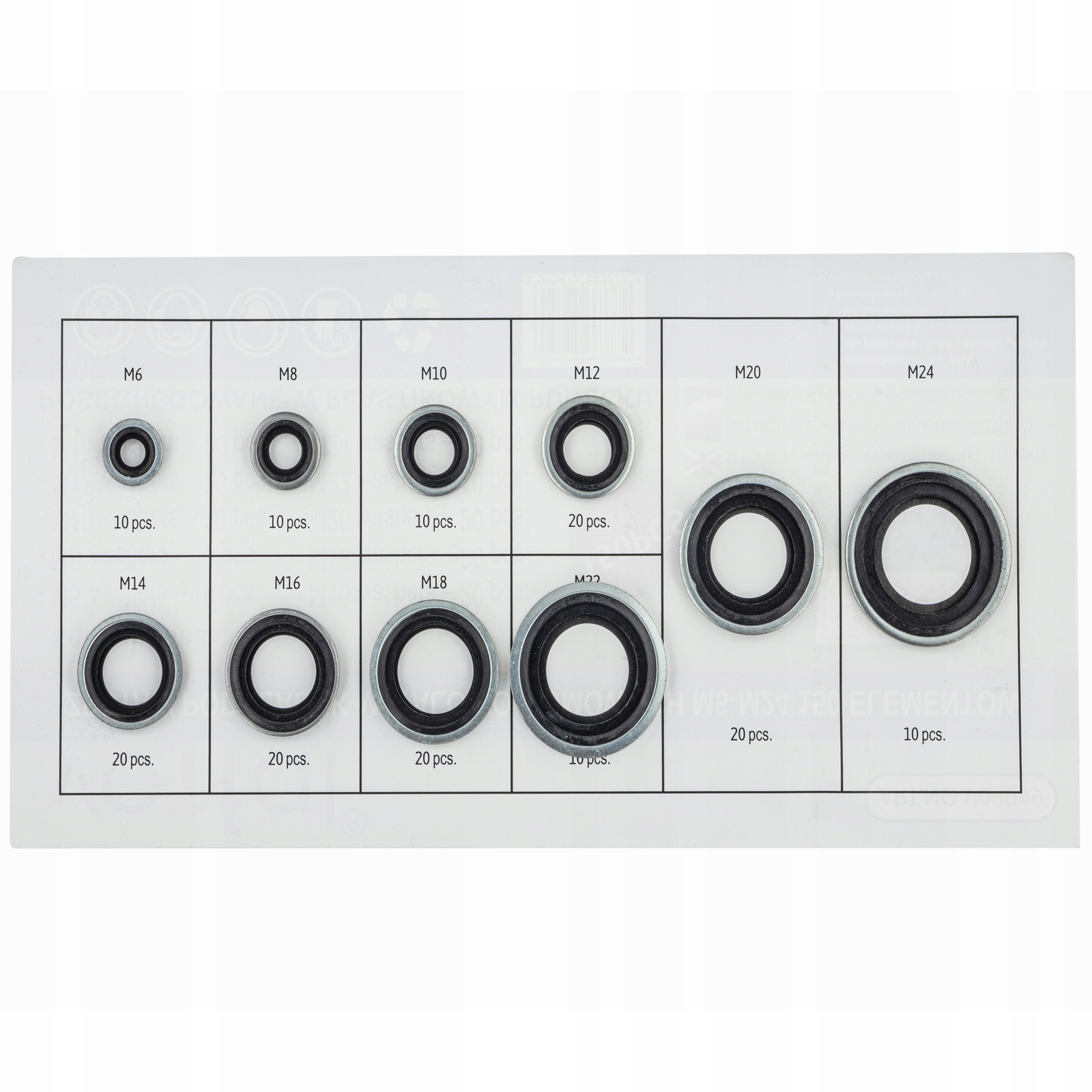 - Набір герметичних прокладок металевих гум у розмірах M6, M8, M10, M12, M14, M16, M18, M20, M22, M24.