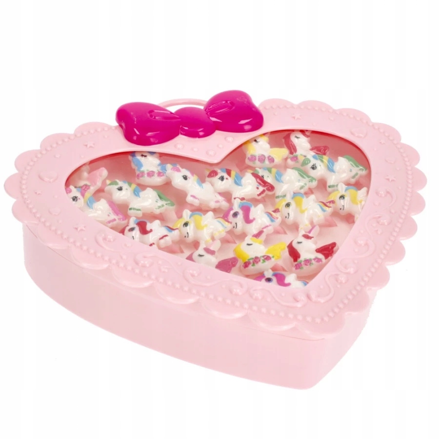 Переваги продукту: Кільця з єдинорогами у упаковці універсального розміру, упаковка серця у вигляді коробки ювелірних виробів.