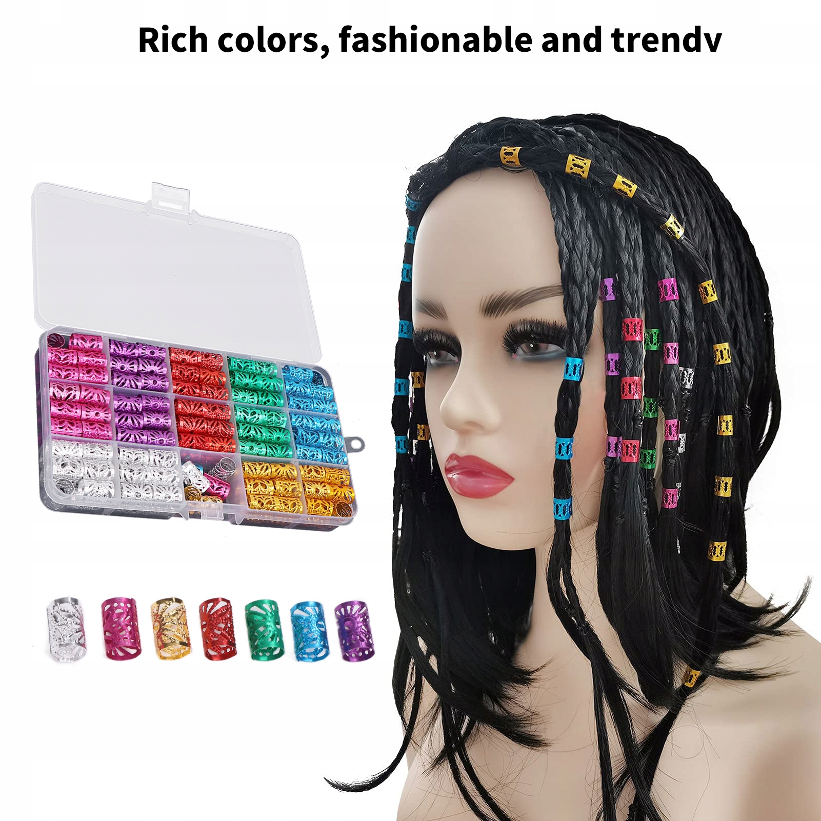 170 шт. Dredy for Hair Beads різні кольори. Вишукані модні візерунки, прості у використанні прикрас для волосся для отримання весілля