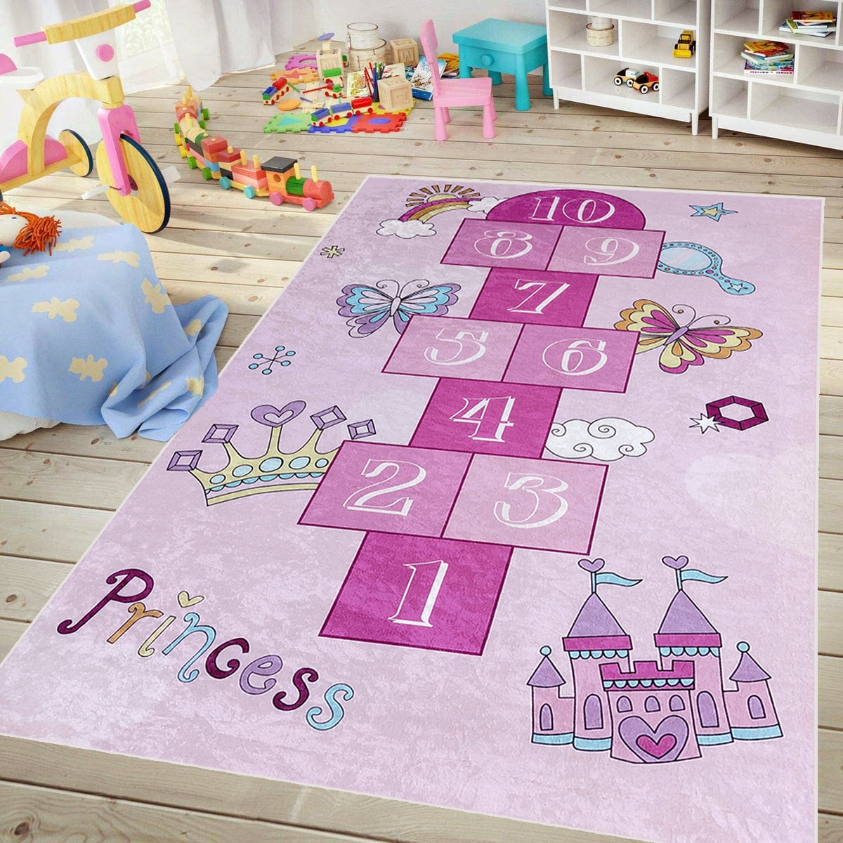 КИЛИМ 120х180, ПРОТИСКЛИЗКИЙ, РОЖЕВИЙ ДЛЯ ДИТИНИ, ПЕРИТЬСЯ, ДИТЯЧИЙ КЛАС