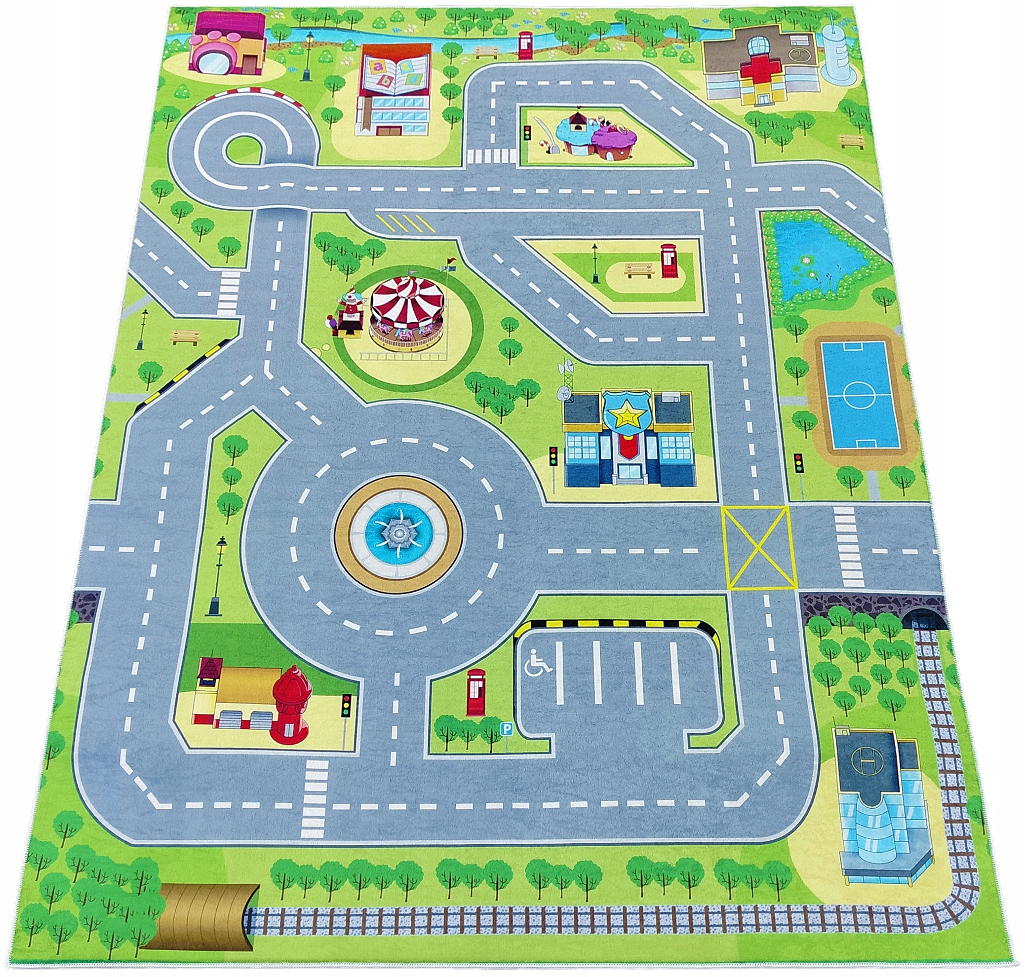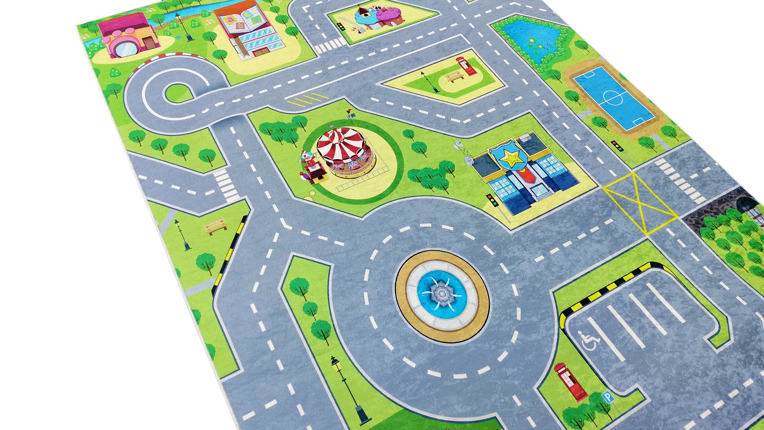 Килимок у формі вулиці для дітей, ідеально підходить для ігор і створення різноманітних сценаріїв. Він виготовлений із матеріалів, безпечних для дітей і приємних на шкіру.