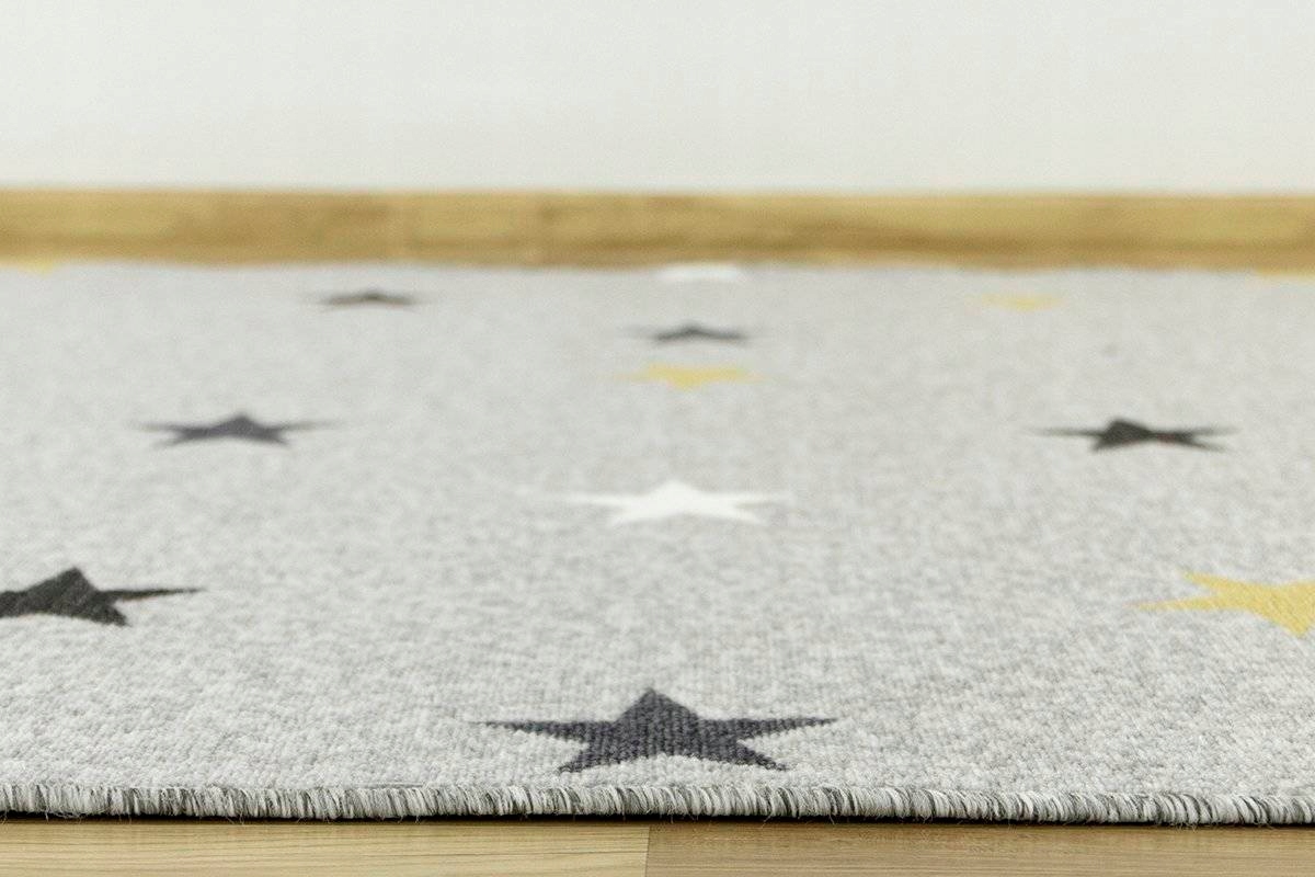 КИЛИМ ДИТЯЧИЙ ДИТЯЧИЙ СІРИЙ ЖОВТИЙ ЗІРКИ НА ВЕТЛІ ЗІРКИ 200х250 см