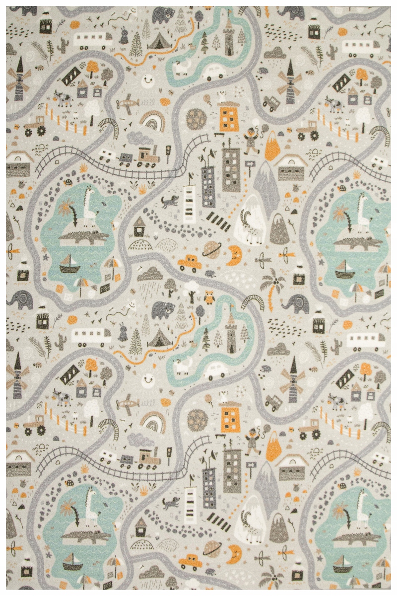 КИЛИМ ДИТЯЧИЙ ПАСТЕЛЬ ВУЛИЧКИ ДОРОГА КОТЕДЖІ СКАНДИНАСЬКИЙ СТИЛЬ 200х200 см