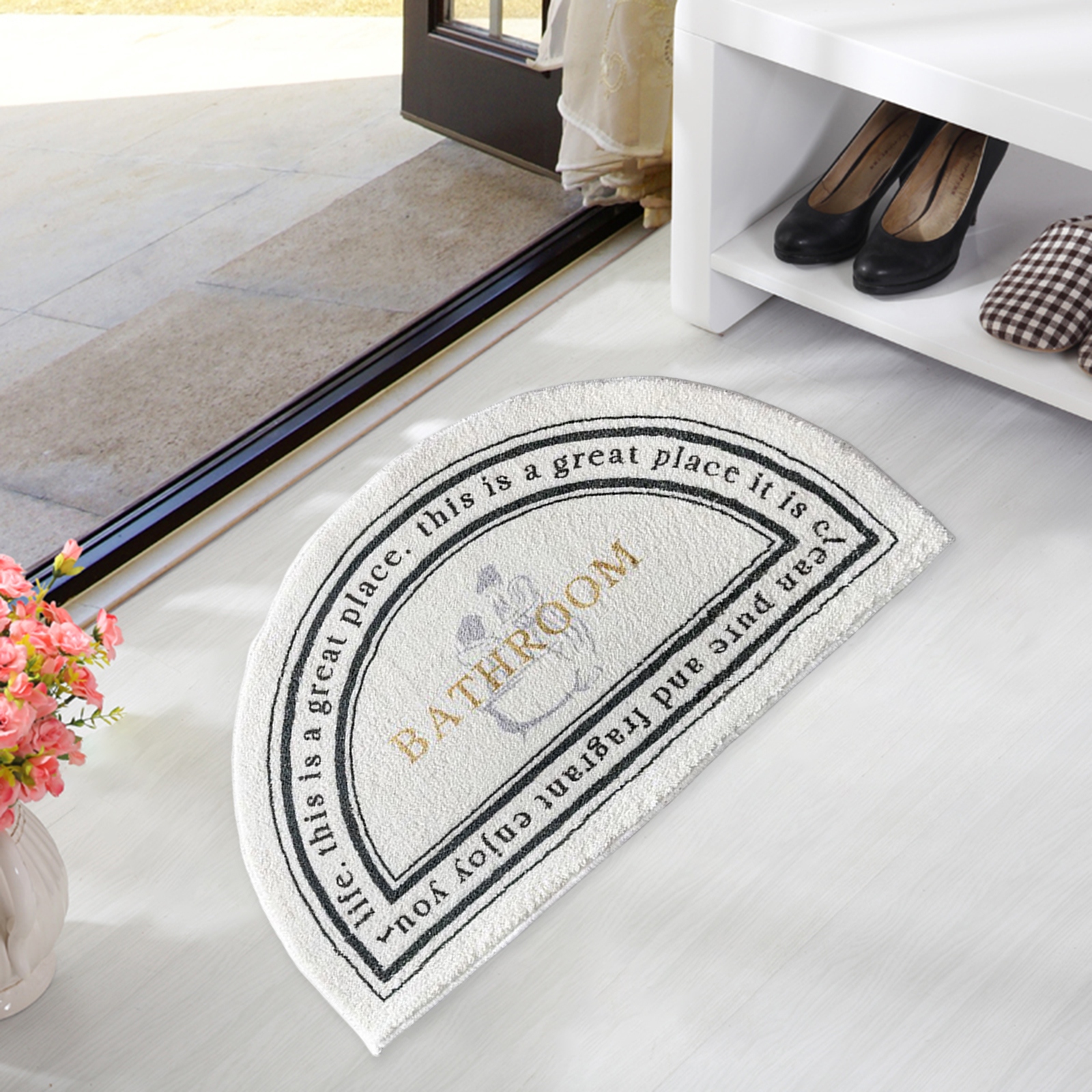 Килим для підлоги, що не має слизу, який можна промивати у пральній машині. Склоочисник у ванній. Наполовину