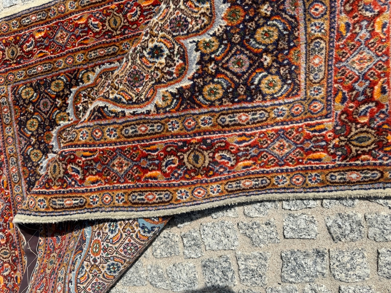 АРТИКУЛ: перський килим ручної роботи з провінції Муд. Оригінал зроблено в Ірані. Є бирка під килим + паперовий сертифікат під замовлення. У галереї до продажу він коштував 1600 євро, тобто близько 7000 злотих. Він унікальний своїм дизайном. Це дуже якісний килим.