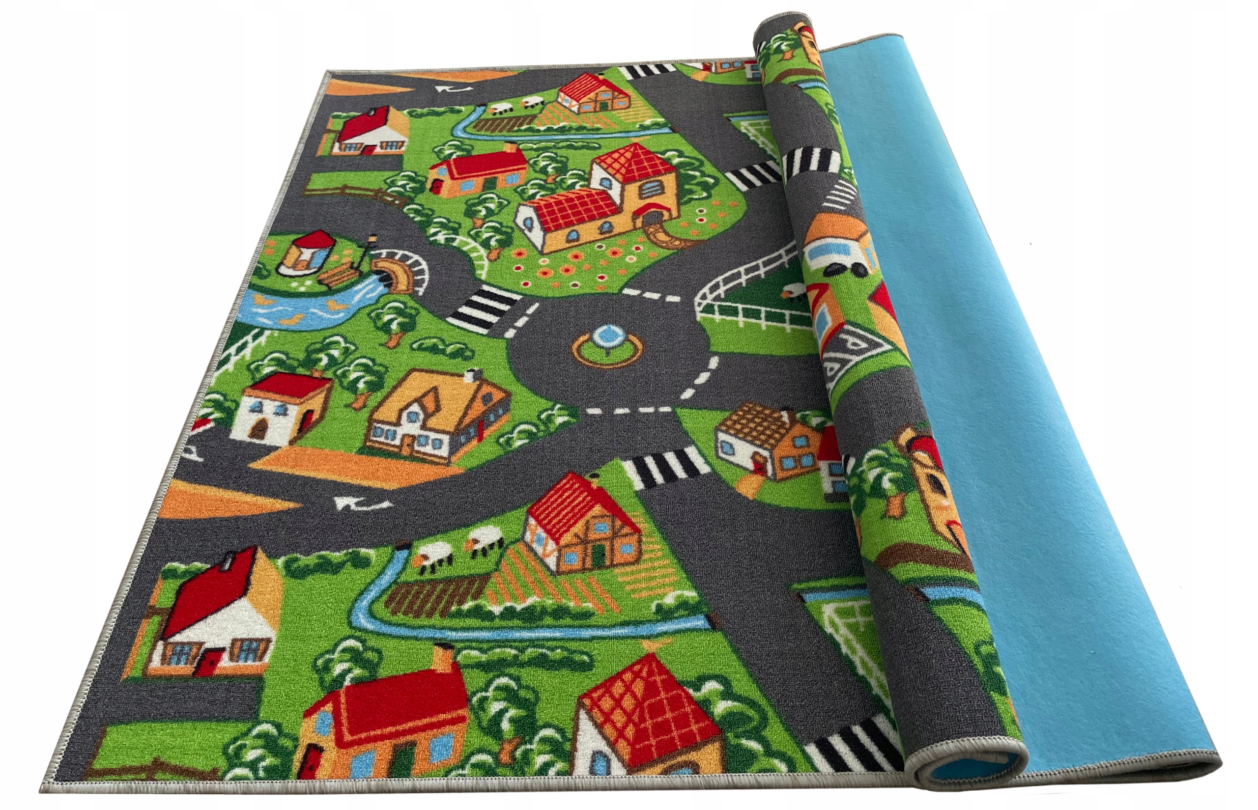 Візерунок із зображенням вулиць, кільцевих розв’язок та перехресть барвистий та веселий, тож неодмінно зацікавить малюків. Килим містить різноманітні елементи, перехрестя, кругові розв’язки та пішохідні переходи, що дозволить дітям розвивати уяву
