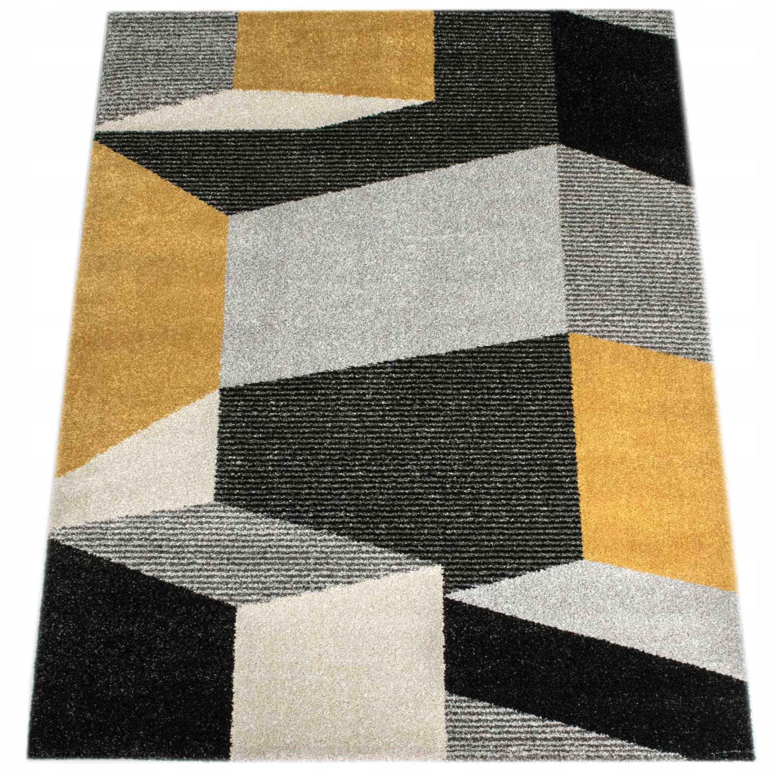 Килим Lara Geometric Grey Yellow для сучасної вітальні 200x290 см