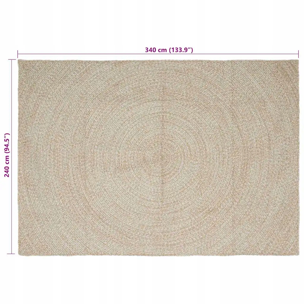 Килим Натуральний і білий 240 х 340 см Джут