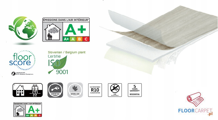 Комфортний, еластичний килим товщиною 2,8 мм з хорошими протиковзкими властивостями. Деталізовані візерунки та текстура цього вінілу мають дуже реалістичний вигляд, а товщина 2,8 мм забезпечує набагато більше тепла та комфорту, ніж плитка.