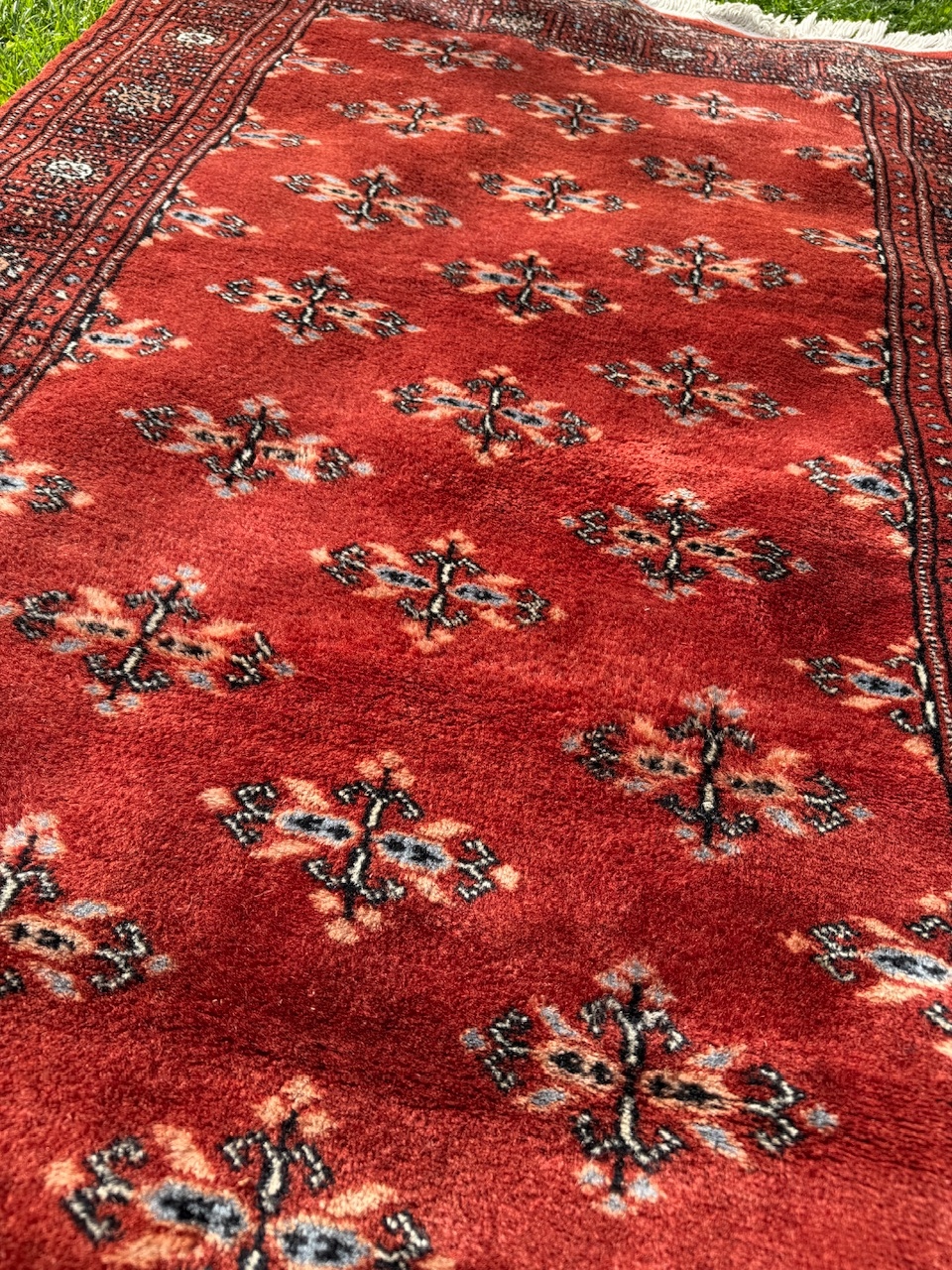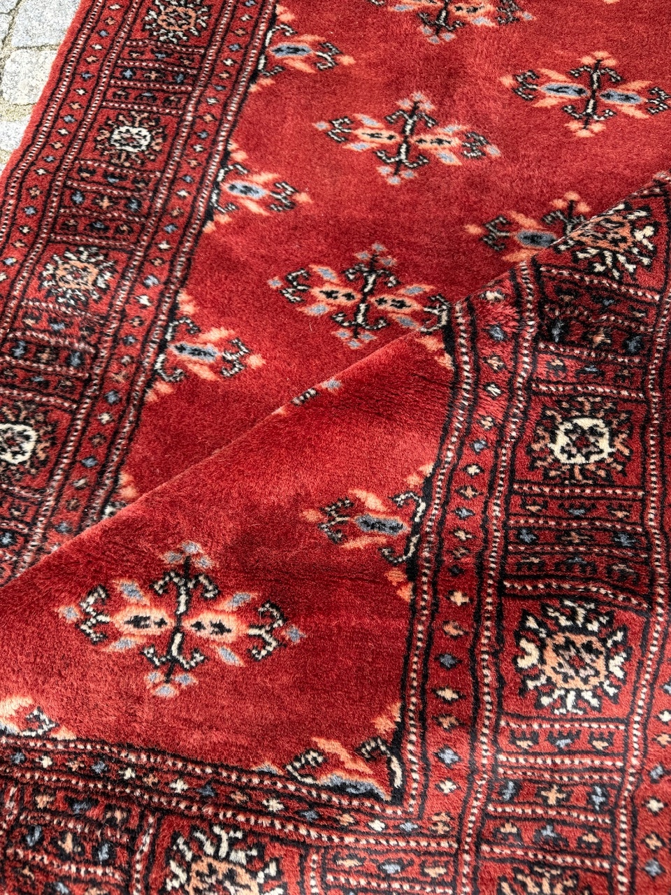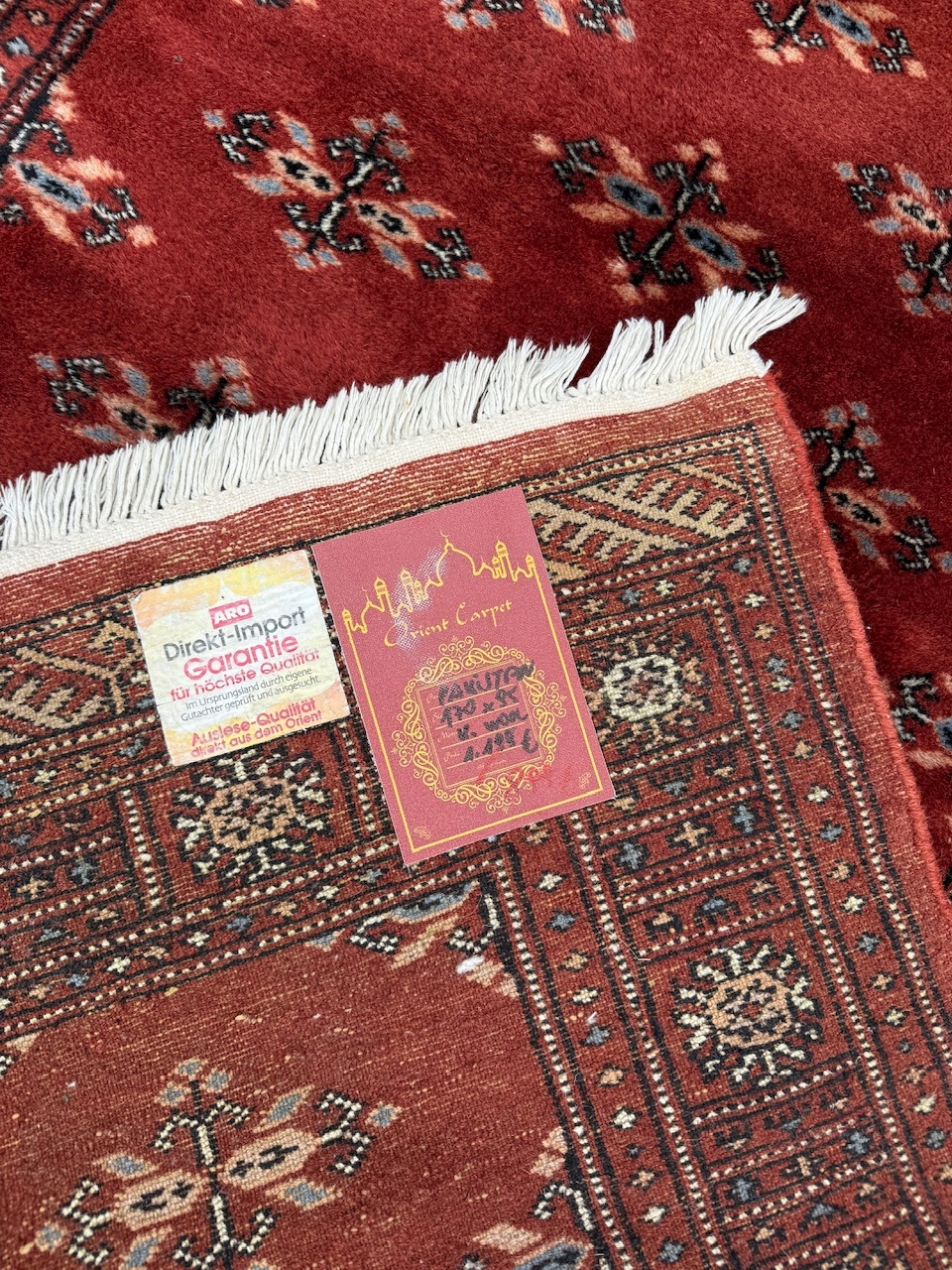 ТЕМА: Бухарський килим ручної роботи. Оригінал зроблено в Пакистані. Є бирка під килим + паперовий сертифікат під замовлення. В галереї до продажу коштував 1200 євро, тобто близько 5000 злотих. Унікальний завдяки своєму дизайну.