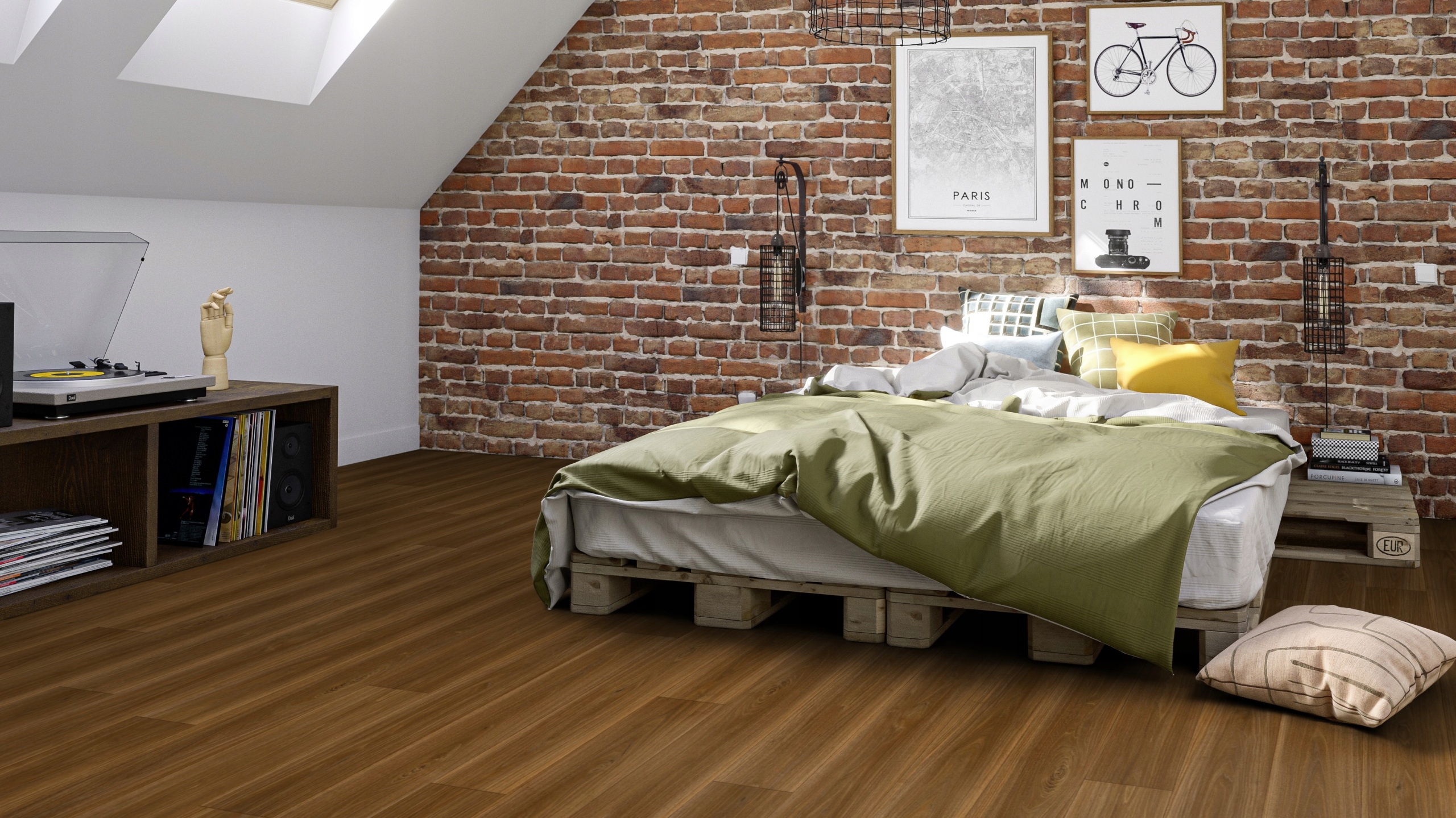 Високоякісне ПВХ покриття Tarkett, ідеально імітує красу натуральної дерев'яної підлоги. Надзвичайно простий в обслуговуванні, установці та дуже довговічний. Продукт характеризується товстим шаром зносу 0,35 мм. Килим має клас придатності з позначенням 32, тому відноситься до групи комерційних килимів, призначених для приміщень із середньою інтенсивністю руху. Завдяки посиленій текстильній підкладці (повсті) килим не деформується під впливом ваги, наприклад, від крісла, шафи тощо. Спеціальна вбудована текстильна підкладка також приховує дрібні дефекти нерівності підлоги.