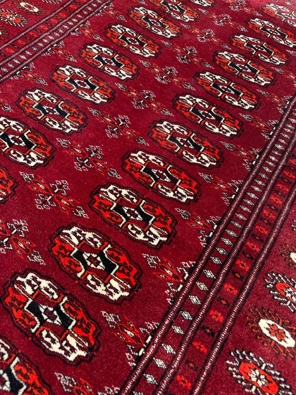 Тема: Рука -ваний килим Бучара. Оригінал зроблений у Пакистані. У ньому є тег під сертифікат RUG + Paper за запитом. У галереї перед знижкою коштувала 650 євро або близько 3000 PLN. є унікальним через його схему. Це дуже високий килимок класу.