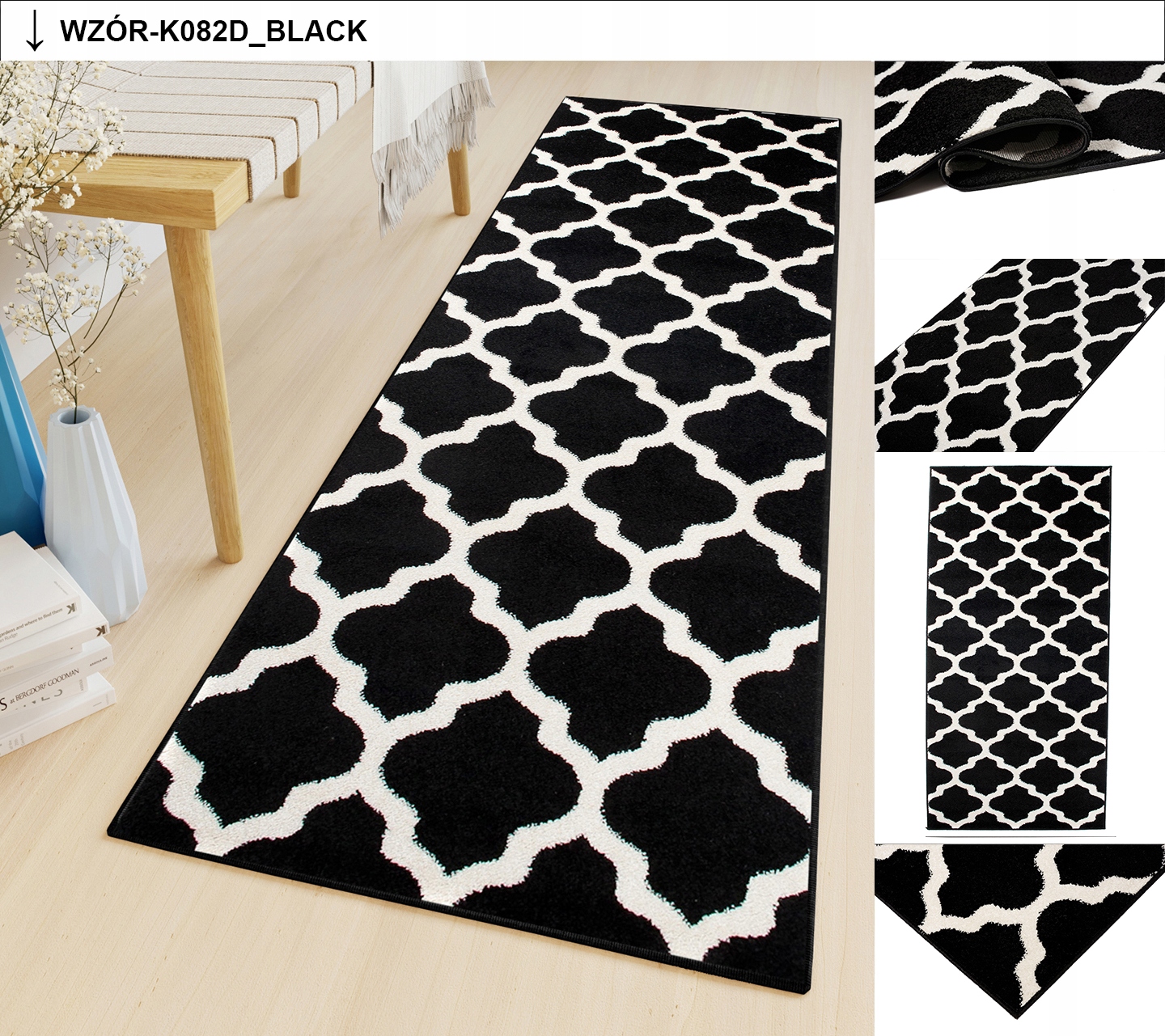 Дно килима джутове, рекомендується використовувати антиковзання. підкладка для коротких секцій.