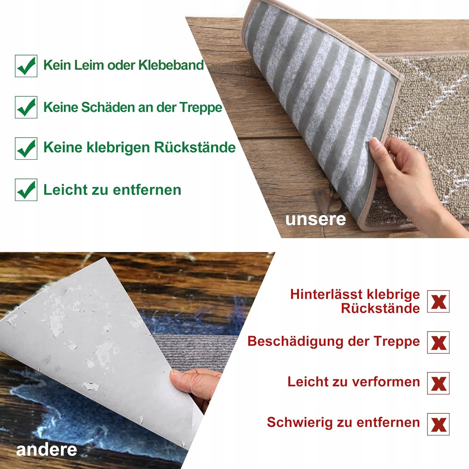 - БЕЗПЕКА ТА ЗАХИСТ КЛИЗАННЯ: Сходинки не ковзають, спеціальна майстерність забезпечує більш професійні протиковзкі властивості, а протиковзкі смуги високої щільності на тильній стороні можуть протистояти, щоб забезпечити нам максимальний рівень безпеки