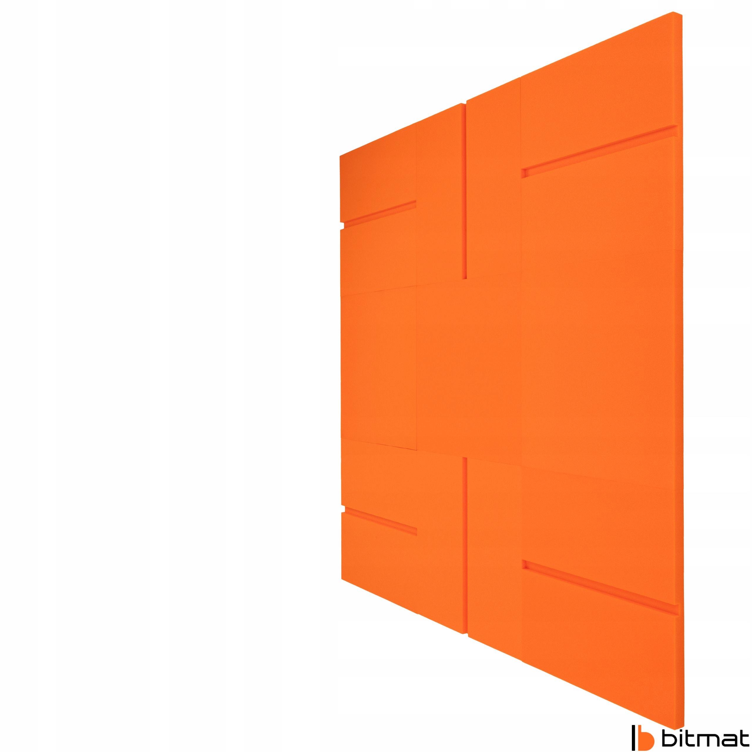 Акустична панель Bitmat у формі квадрата з фаскою, помаранчевого кольору, розміром 50 × 50 × 3 см - відмінне рішення для покращення акустики та естетики інтер'єрів. Завдяки структурі з відкритими осередками панель ефективно поглинає звуки, усуваючи відлуння та зменшуючи реверберацію, завдяки чому звук стає чистим і виразним.