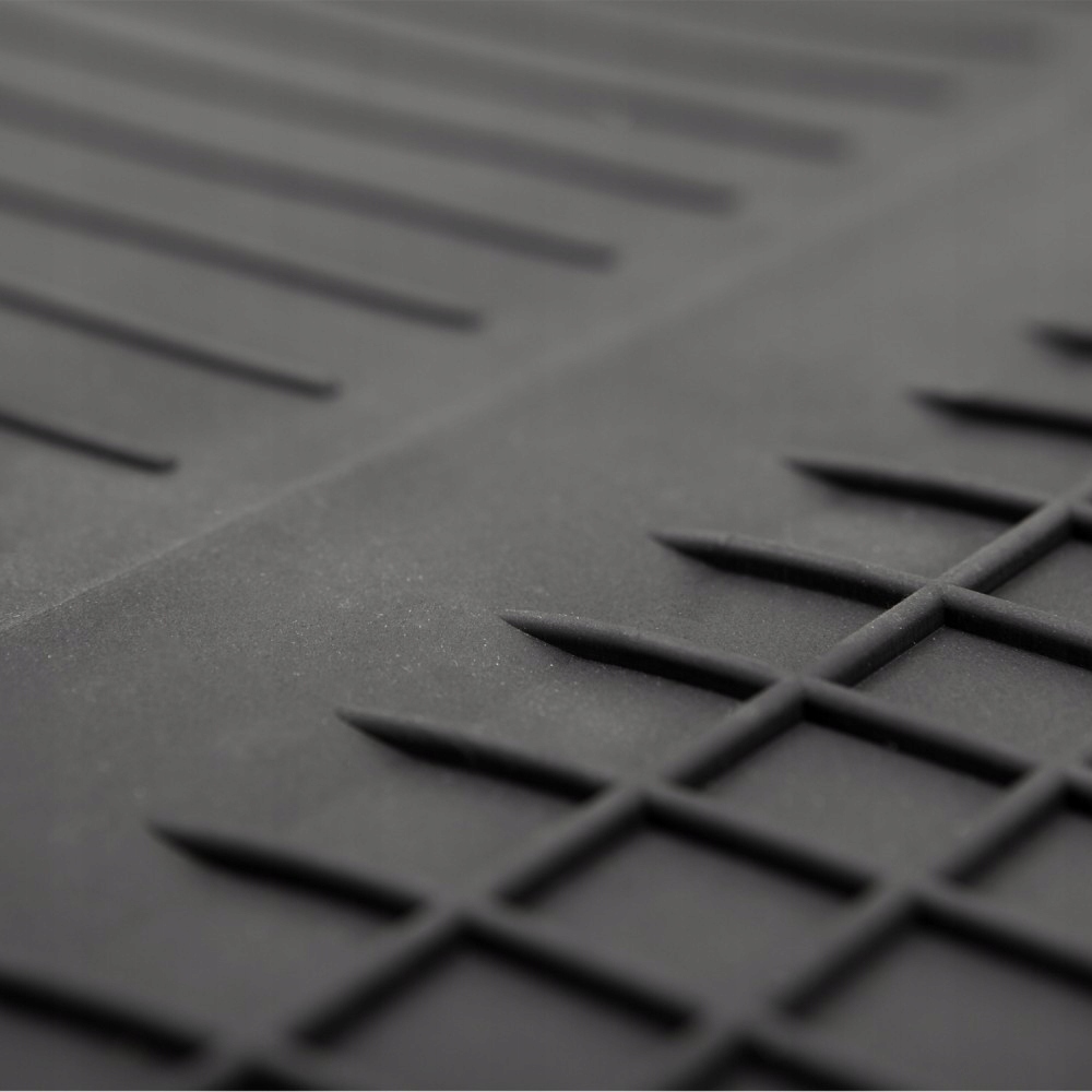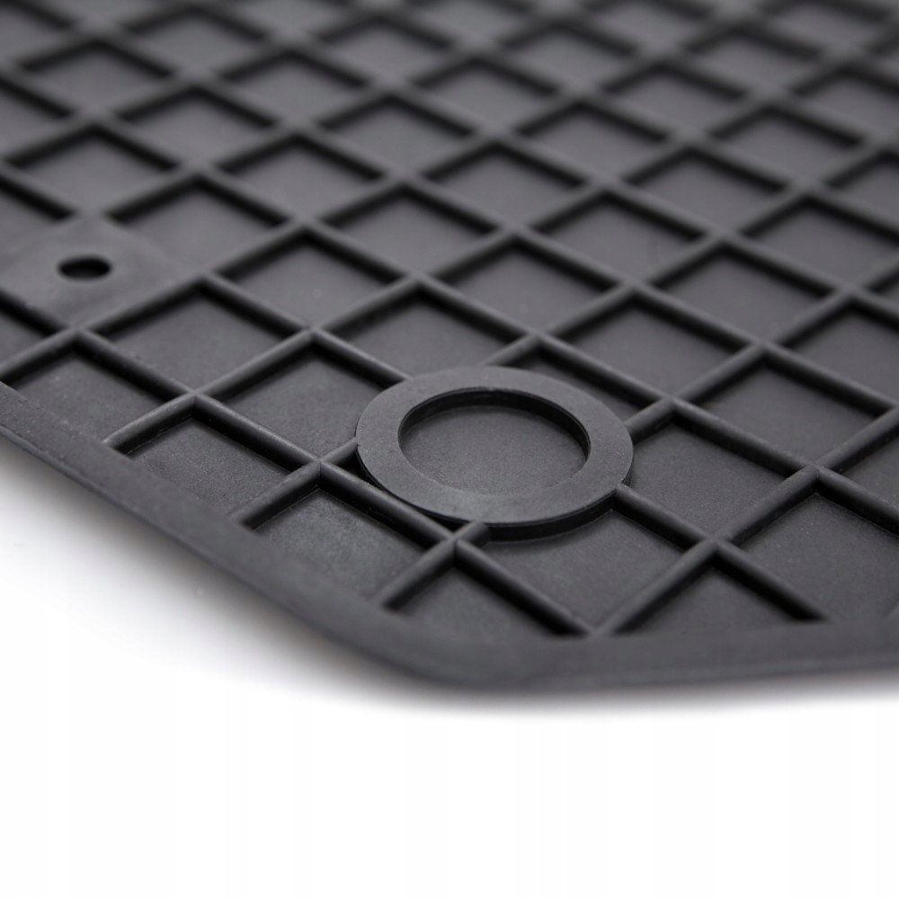 Килимки виготовлені з ретельно підібраної гумової суміші, розробленої спеціально для виробництва автомобільних килимків. Це робить їх стійкими до стирання. Додатковий захист забезпечують шпильки на нижній частині килимків, які не дають їм рухатися. Ступінь відповідності форми оригінальним килимкам: прибл. 90-100%. Увага! Багато продавців продають подібні килими, позначаючи їх загадковим словом «підібраний» (який клієнти часто плутають із «спеціальними» килимами, тобто зі ступенем 100% відповідності). При цьому дуже часто це килими зі ступенем пристосування, що не перевищує навіть 75%.
