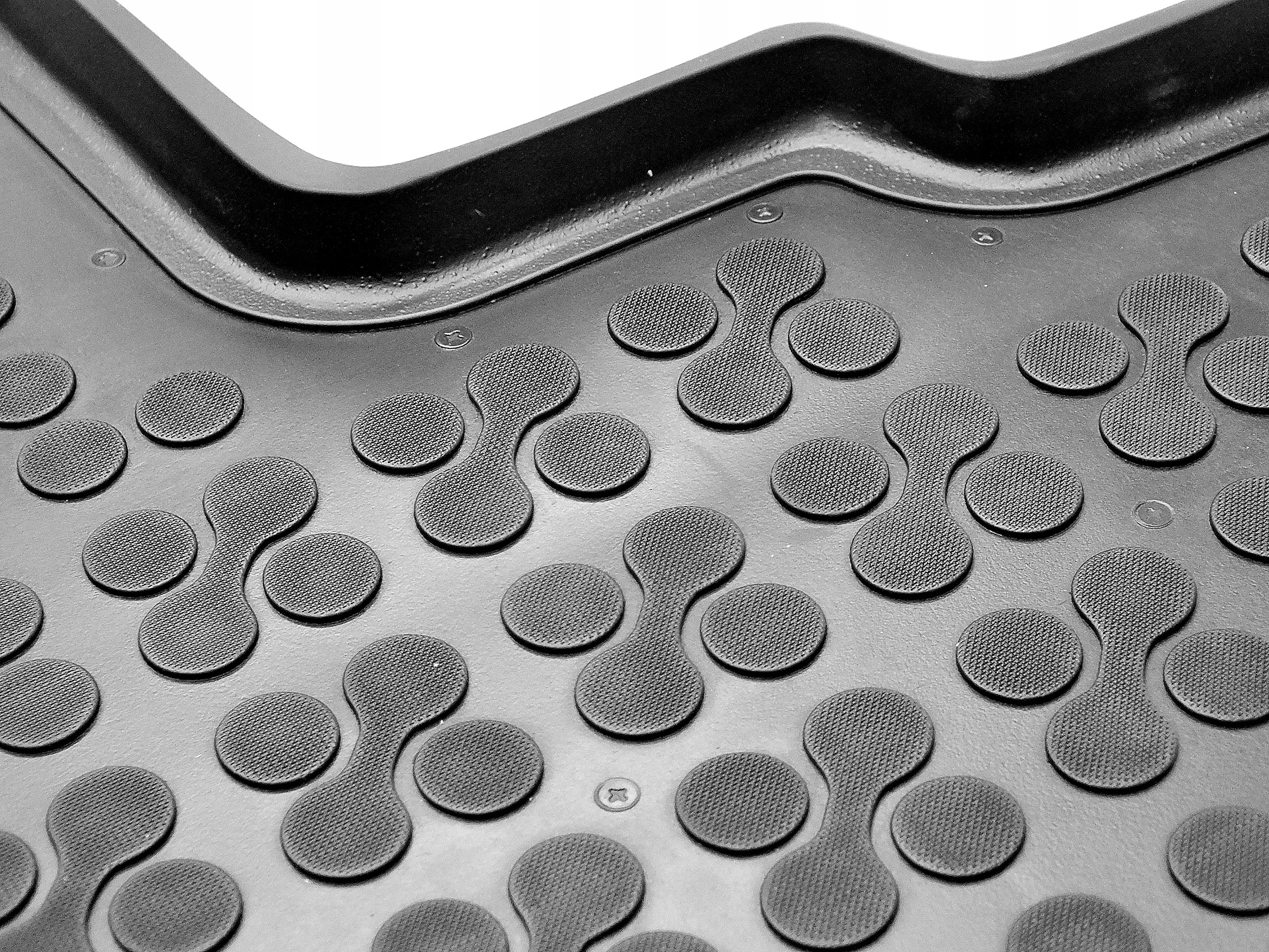 - ідеальне прилягання до конкретних моделей автомобілів запобігає зсуву килимків, а також дозволяє зберегти естетику салону, бічні килимки полегшують утримання автомобіля в чистоті та захищають підлогу від вологи та корозії.