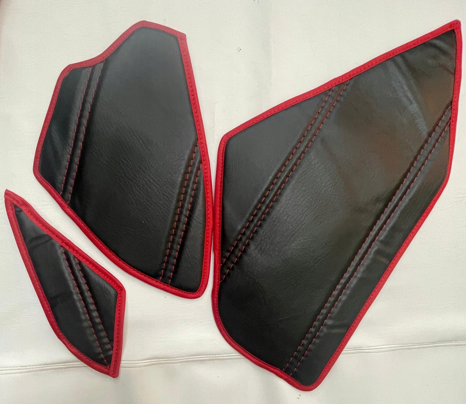 Килимки виготовлені з шкірозамінника (екошкіра). Потім все стьобано. Низ килимів проклеєний неслизькою неслизькою тканиною, яка запобігає їх зсуву.