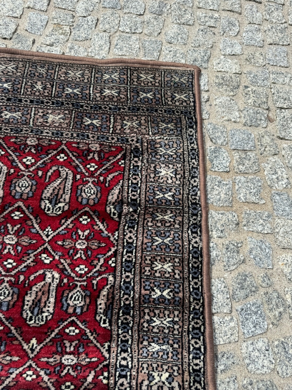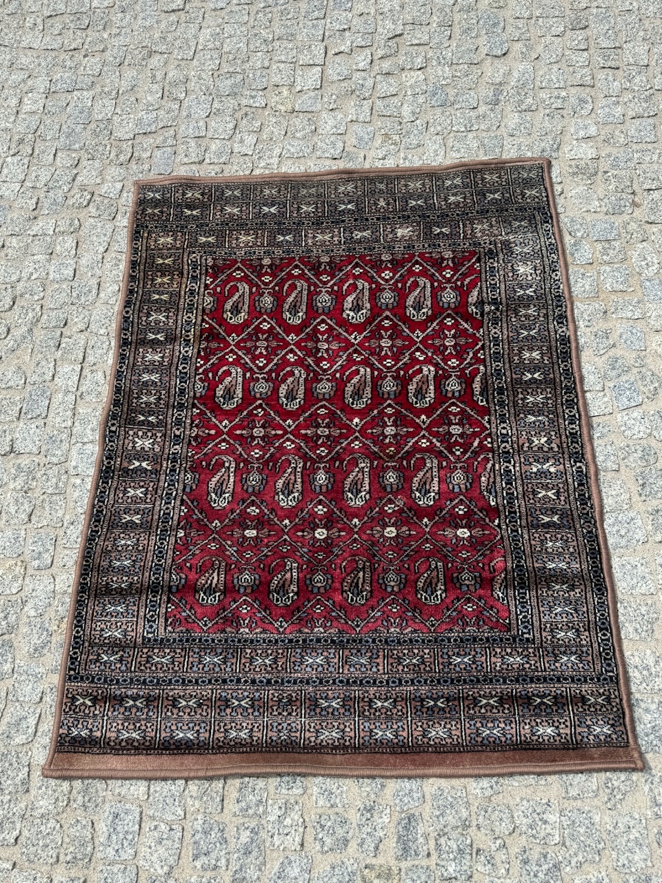 АРТИКУЛ: Килим ручної роботи Made In Pakistan, універсальний малюнок . Ідеально підходить для ванної кімнати або як килимок. Є бирка під килим + паперовий сертифікат під замовлення. У галереї до продажу він коштував 700 євро, тобто близько 3000 злотих. Він унікальний своїм дизайном. Це дуже якісний килим.