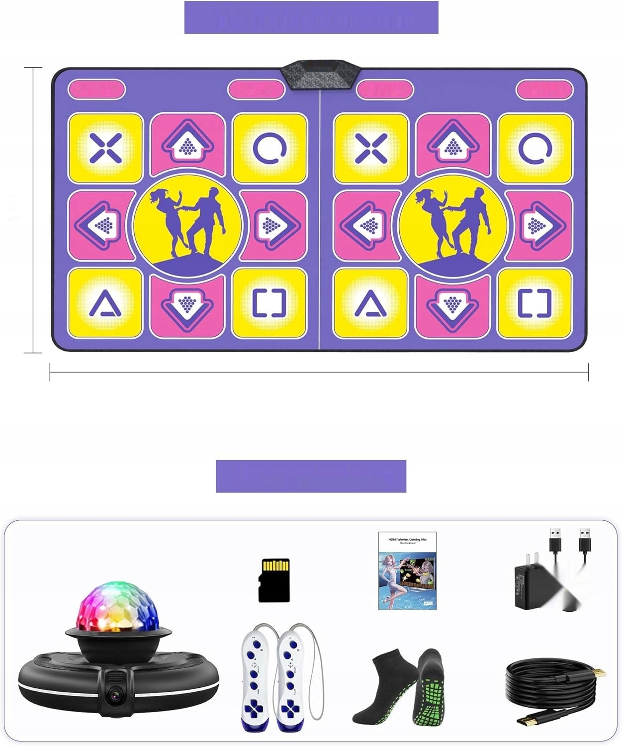✅ ПІДНЯТЬ РОЗВАГИ НА НОВИЙ РІВЕНЬ: Інтерактивний танцювальний килимок від Acelufly - де веселощі зустрічаються з фітнесом! 3 танцювальні режими, понад 150 пісень, 9 захоплюючих ігор з камерою, 45 посібників з йоги, 3 захоплюючі ігри для бігу та колекція з понад 70 ігор із бездротовими контролерами — це найкращий пакет розваг для кожного.