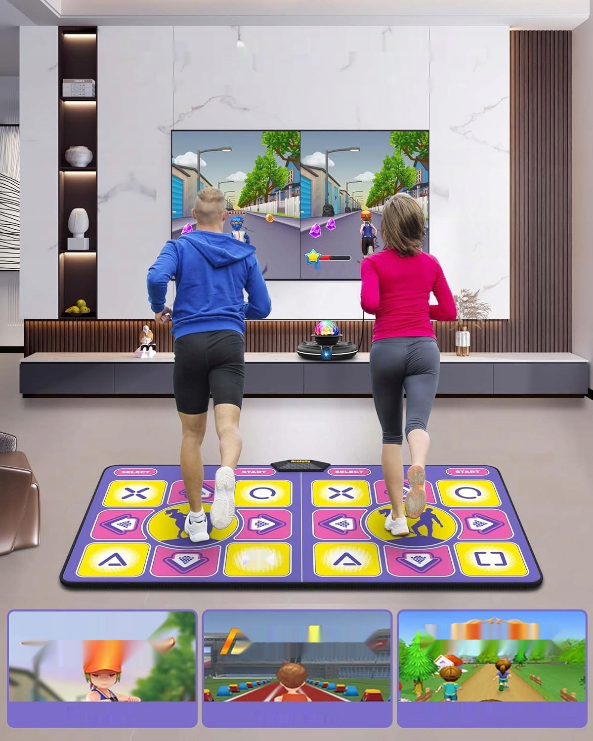 ✅ РІЗНОМАНІТНІ РЕЖИМИ ІГРИ ДЛЯ БУДЬ-ЯКОГО ВІКУ: універсальний танцювальний килимок Acelufly - де всі покоління знайдуть нескінченну розвагу! Наш танцювальний килимок пропонує різноманітні розважальні ігри, які підходять для будь-якого віку. Насолоджуйтеся викликом різних танцювальних стилів, пісень і рівнів складності. Спробуйте класичну гру з камерою Fruit Ninja та захоплюючі підводні пригоди. Від ретро улюблених ігор, таких як Super Mario, до складних головоломок і спортивних ігор, наш килимок має все.