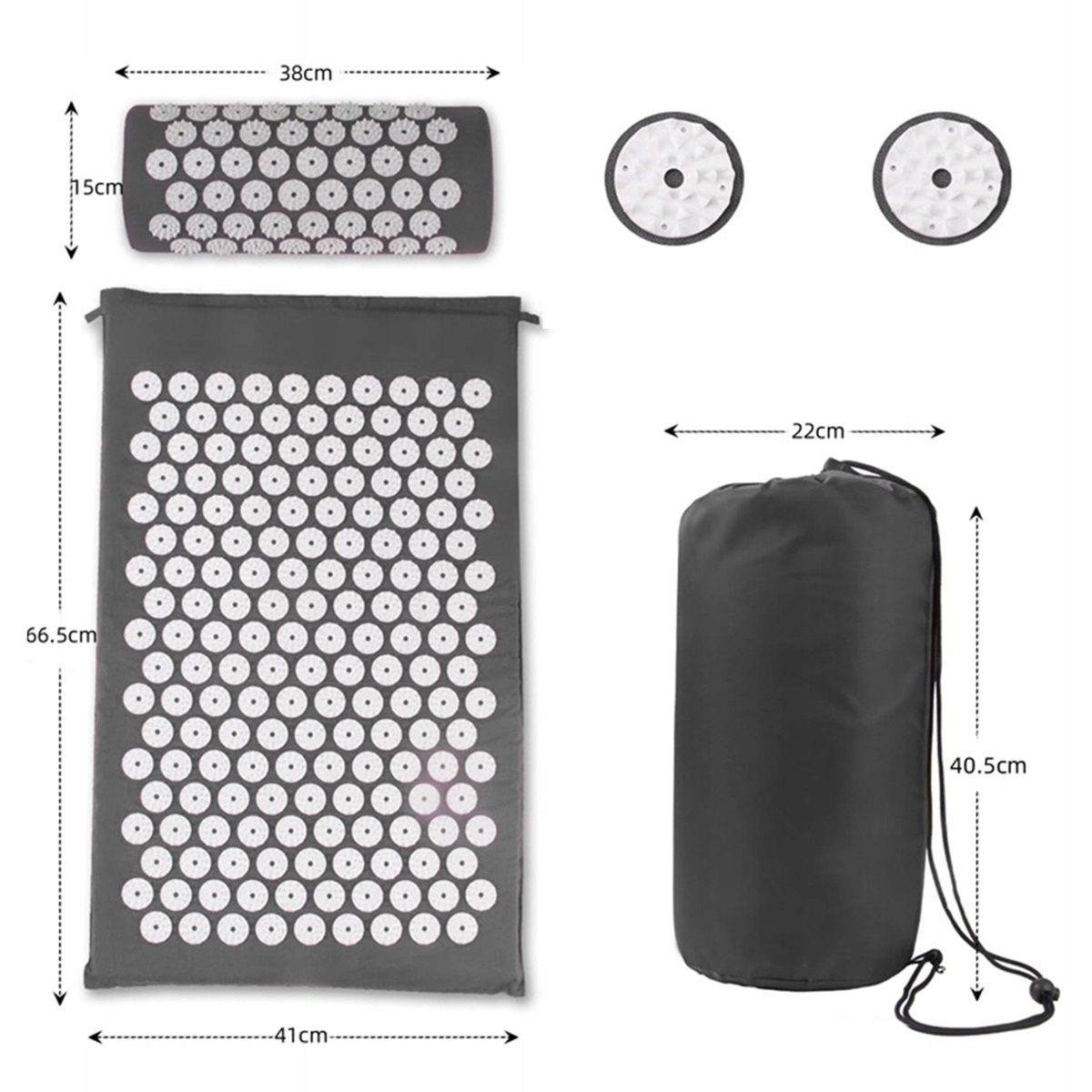 Розміри килимка - 62 х 38 см, а набір також містить подушку акупресура.