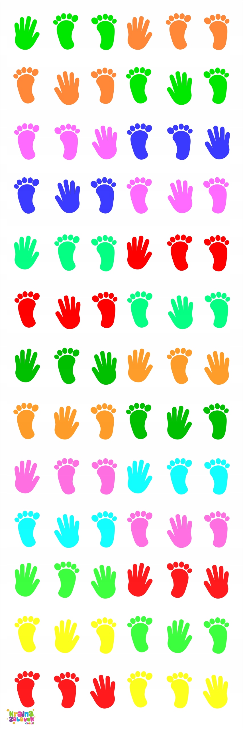 Кольори: білий килимок із відбитками ніг і рук різних кольорів