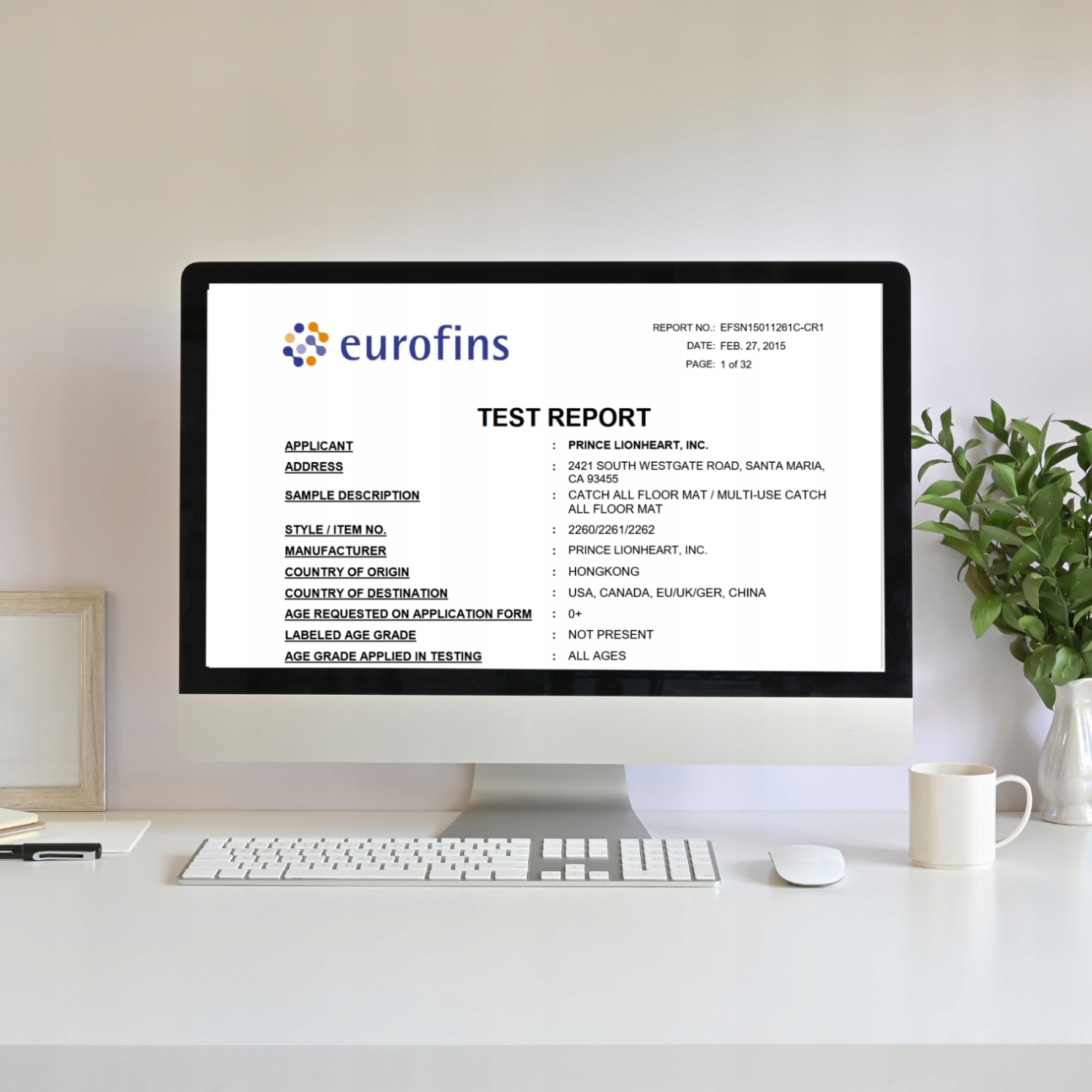 Килимок пройшов суворі випробування у відомій лабораторії Eurofins, які підтвердили безпеку килимків та їх відповідність стандартам (номер звіту EFSN15011261C-CR1):