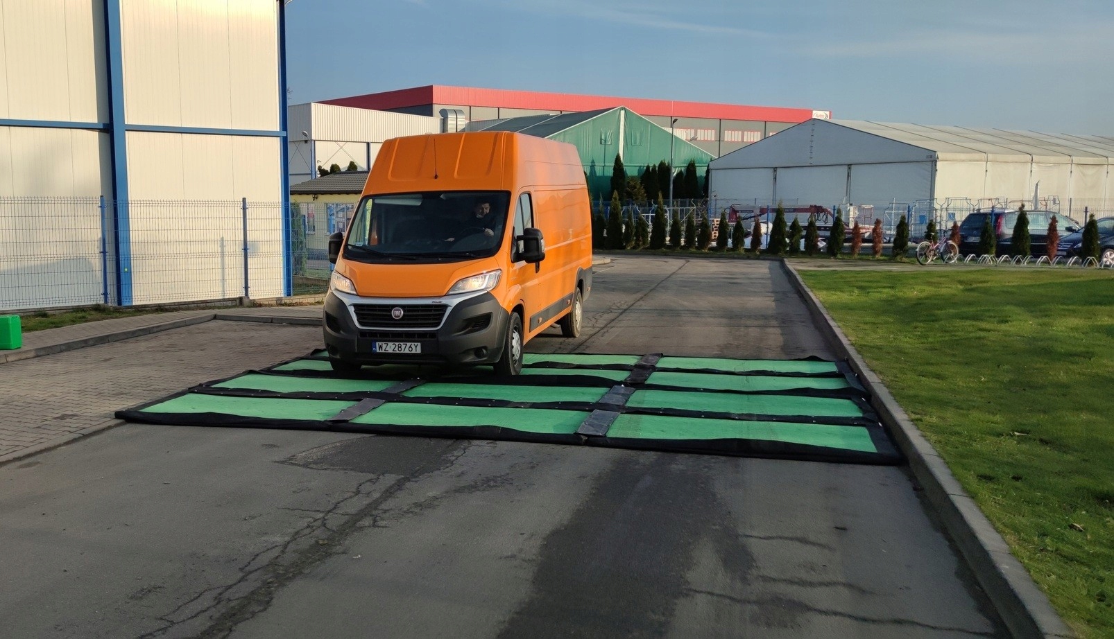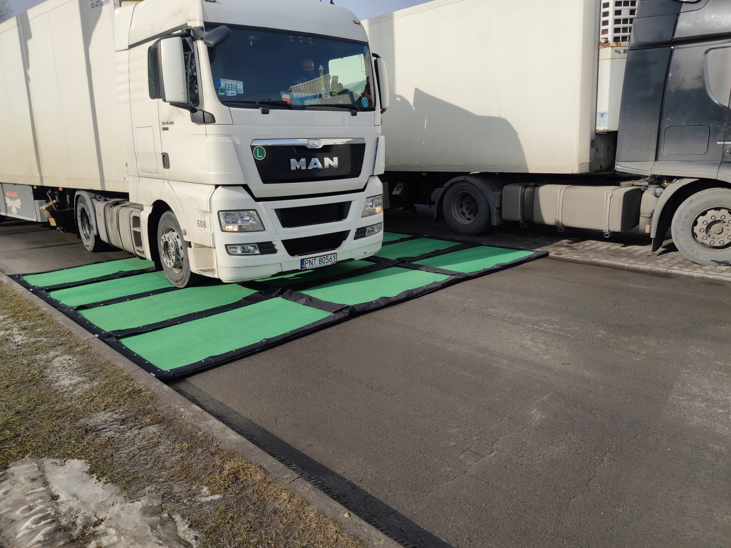 - Щоб килимок виконував свою роль, його необхідно розмістити безпосередньо у в'їзних воротах. Під колеса рекомендується підкласти комплект із 2 дезінфекційних килимків у вигляді паралельних смуг.